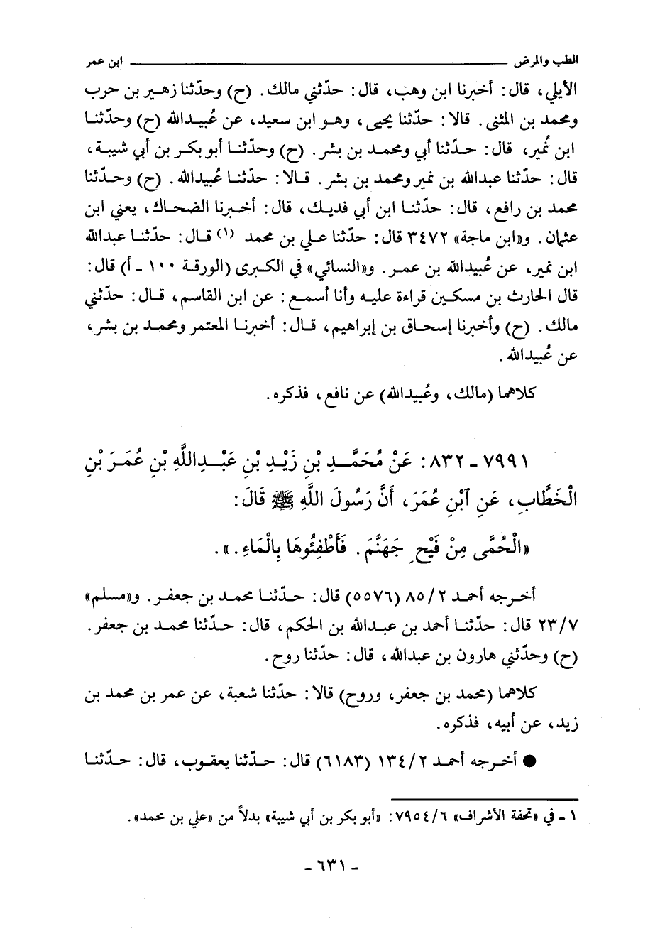 ٧٩٩١ - عَنْ مُحَمَّدِ بْنِ زَيْدٍ بْنِ عَبْدِ اللَّهِ بْنِ عُمَرَ بْنِ الْخّطَّابِ , عَنِ ابْنِ عُمَرَ أَنَّ رَسُولَ اللَّهِ صلى الله عليه وسلم قَالَ: