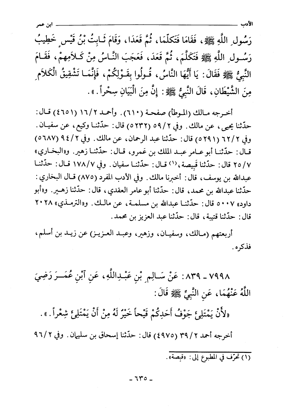 ٧٩٩٨ - عَنْ سَالِمْ بْنَ عَبْدِ اللَّهِ قَالَ سَمِعْتُ عَبْدَ اللَّهِ بْنَ عُمَرَ يَقُولُ سَمِعْتُ رَسُولَ اللَّهِ صلى الله عليه وسلم يَقُولُ: