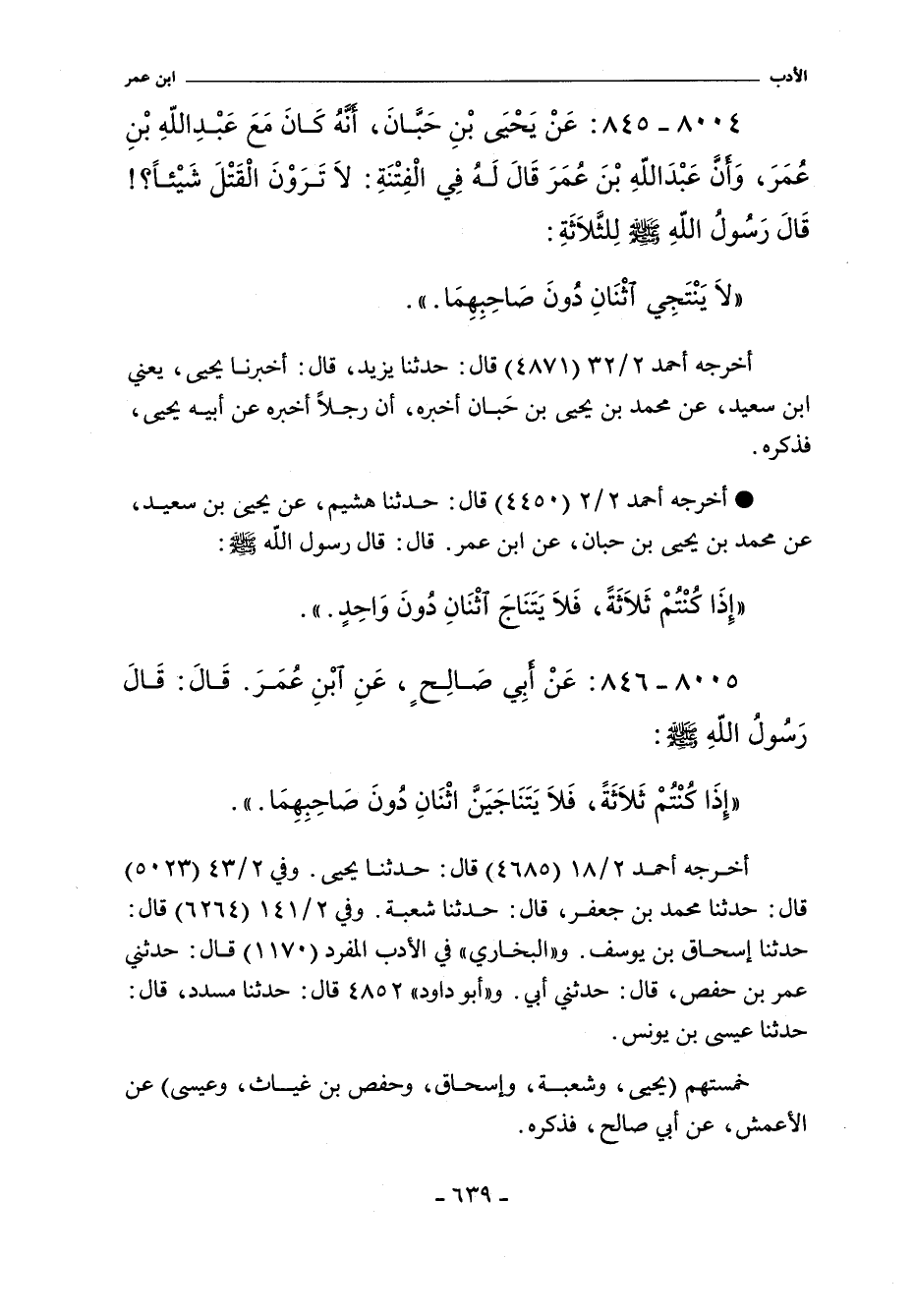 إِذَا كُنْتُمْ ثَلَاثَةً فَلَا يَتَنَاجَ اثْنَانِ دُونَ وَاحِدٍ.