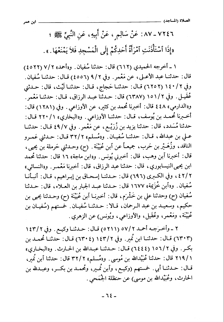 ٧٢٤٦ - عَنْ سَالِمٍ عَنْ أَبِيهِ عَنِ النَّبِىِّ صلى الله عليه وسلم؛