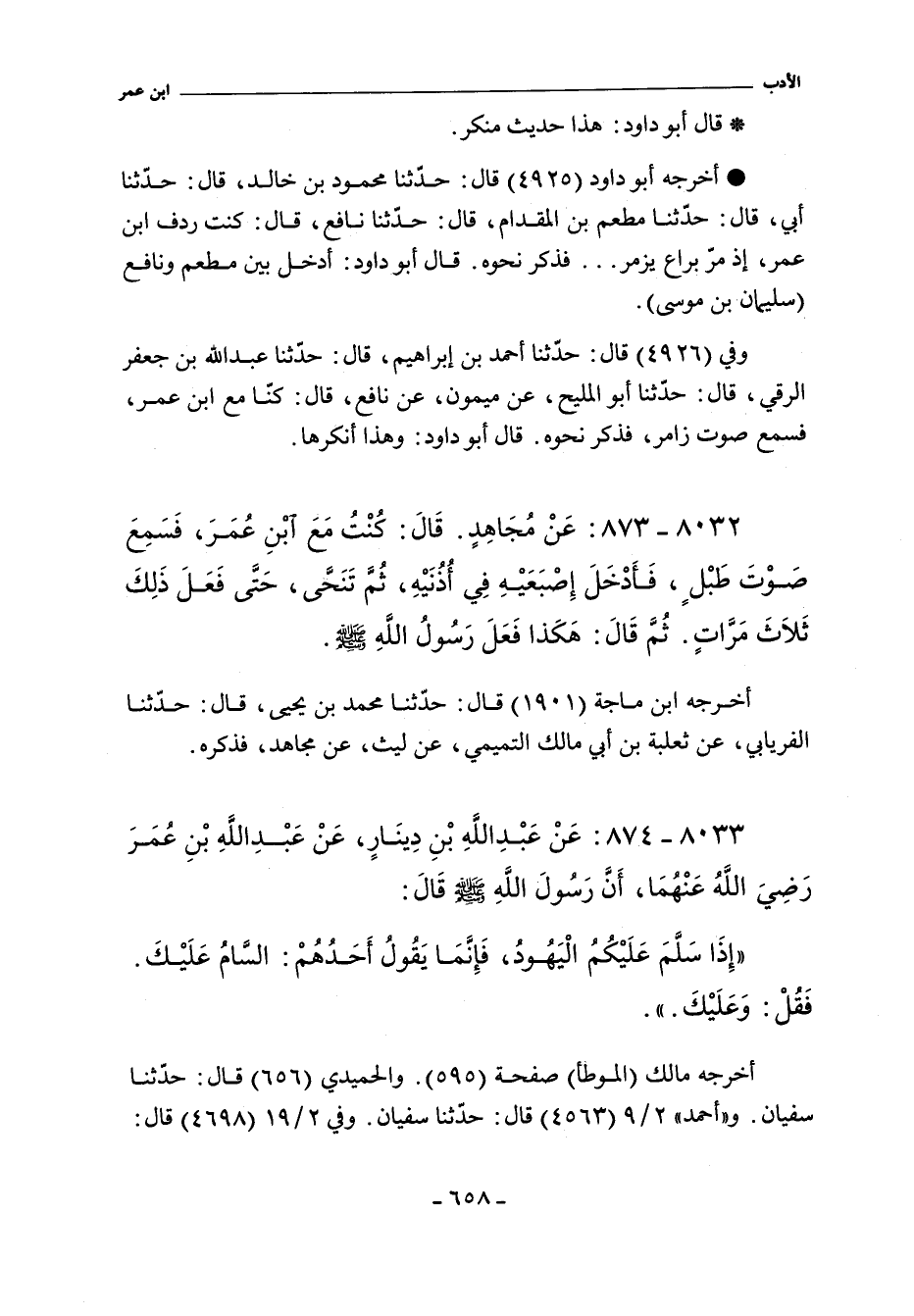 ٨٠٣٣ - عَنْ عَبْدِ اللَّهِ بْنِ دِينَارٍ عَنْ عَبْدِ اللَّهِ بْنِ عُمَرَ رضى الله عنهما أَنَّ رَسُولَ اللَّهِ صلى الله عليه وسلم قَالَ: