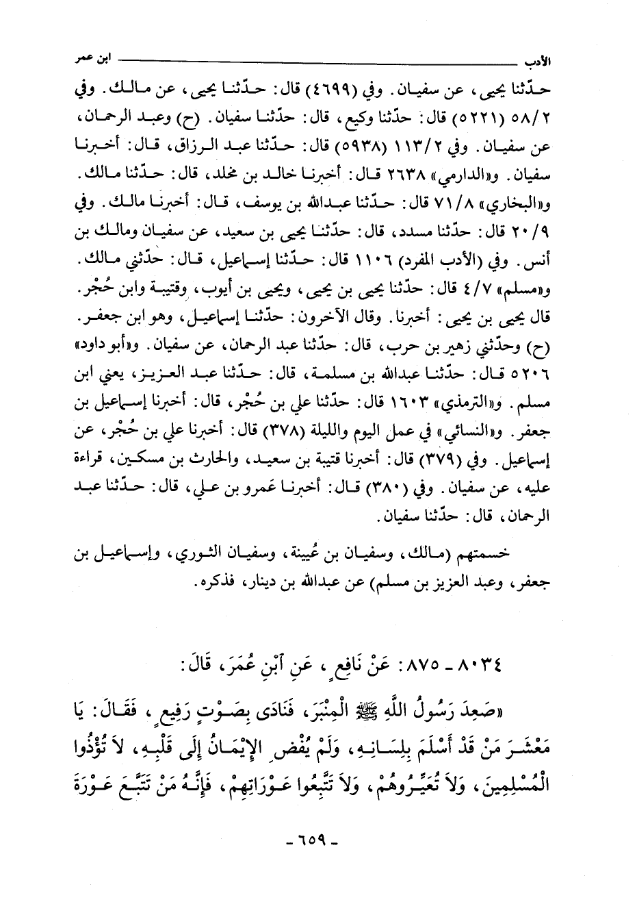 حدثنا يحيى، عن مالك. وفي ٢/ ٥٨ (٥٢٢١) قال: حدثنا وكيع، حدثنا سفيان (ح) وعبد الرحمن، عن سفيان. وفي ٢/ ١١٣ (٥٩٣٨) قال: حدثنا عبد الرزاق، أخبرنا سفيان. و"الدارمي" ٢٦٣٥ قال: أخبرنا خالد بن مخلد، حدثنا مالك. و"البُخَاريّ" ٨/ ٧١ (٦٢٥٧) قال: حدثنا عبد الله بن يوسف، أخبرنا مالك. وفي ٩/ ٢٠ (٦٩٢٨) قال: حدثنا مسدد، حدثنا يحيى بن سعيد، عن سفيان، ومالك بن أنس. وفي (الأدب المفرد) ١١٠٦ قال: حدثنا إسماعيل، قال: حدثني مالك. و"مسلم" ٧/ ٤ (٥٧٠٥) قال: حدثنا يحيى، ويحيى بن أيوب، وقتيبة، وابن حجر. قال يحيى بن يحيى: أخبرنا. وقال الآخرون: حدثنا إسماعيل، وهو ابن جعفر. وفي (٥٧٠٦) قال: وحدثنا زهير بن حرب، حدثنا عبد الرحمن، عن سفيان. و"أبو داود" ٥٢٠٦ قال: حدثنا عبد الله بن مسلمة، حدثنا عبد العزيز، يعني ابن مسلم. والتِّرْمِذِيّ" ١٦٠٣ قال: حدثنا علي بن حجر، أخبرنا إسماعيل بن جعفر. و"النَّسَائي" في "عمل اليوم والليلة" ٣٧٨ قال: أخبرني علي بن حجر، عن إسماعيل. وفي (٣٧٩) قال: أخبرنا قتيبة بن سعيدج، والحارث بن مسكين، قرئة عليه، عن سفيان. وفي (٣٨٠) قال: أخبرنا عمرو بن علي، قال: حدثنا عبد الرحمن، قال: حدثنا سفيان.