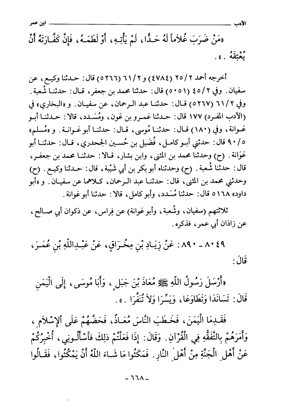 أَخْرَجَهُ أحمد ٢/ ٢٥ (٤٧٨٤) و ٢/ ٦١ (٥٢٦٦) قال: حدثنا وكيع، عن سفيان. وفي ٢/ ٤٥ (٥٠٥١) قال: حدثنا محمد بن جعفر، حدثنا شعبة. وفي ٢/ ٦١ (٥٢٦٧) قال: حدثنا عبد الرحمن، عن سفيان. و"البخاري) في (الأدب المفرد) ١٧٧ قال: حدثنا عَمرو بن عَون، ومُسَدد. قالا: حدثنا أبو عَوانة، وفي (١٨٠) قال: حدثنا مُوسى. قال: حدثنا أبو عَوانة. و"مسلم" ٥/ ٩٠ (٤٣١١) قال: حدثني أبوكامل، فُضَيل بن حُسين الجحدري، حدثنا أبو عَوَانة. وفي (٤٣١٢) قال: وحدثنا محمد بن المثنى، وابن بشار. قالا: حدثنا محمد بن جعفر، حدثنا شُعبة. وفي (٤٣١٣) قال: وحدثناه أبو بكر بن أبي شَيْبة، حدثنا وكيع (ح) وحدثني محمد بن المثنى، حدثنا عبد الرحمن، كلاهما عن سفيان. و"أبو داود" ٥١٦٨ قال: حدثنا مُسَدد، وأبو كامل. قالا: حدثنا أبو عَوانة.