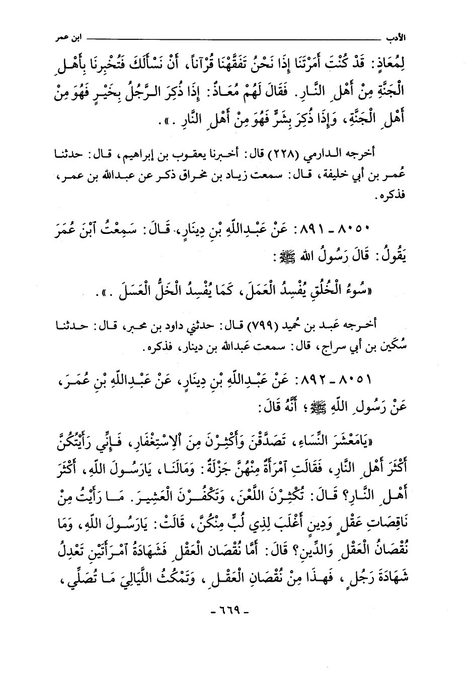 أَخْرَجَهُ الدارمي (٢٢٢) قال: أخبرنا يعقوب بن إبراهيم، حدثنا عُمر بن أبي خليفة، قال: سعت زياد بن مخراق، ذكر عن عبد الله بن عمر، فذكره.