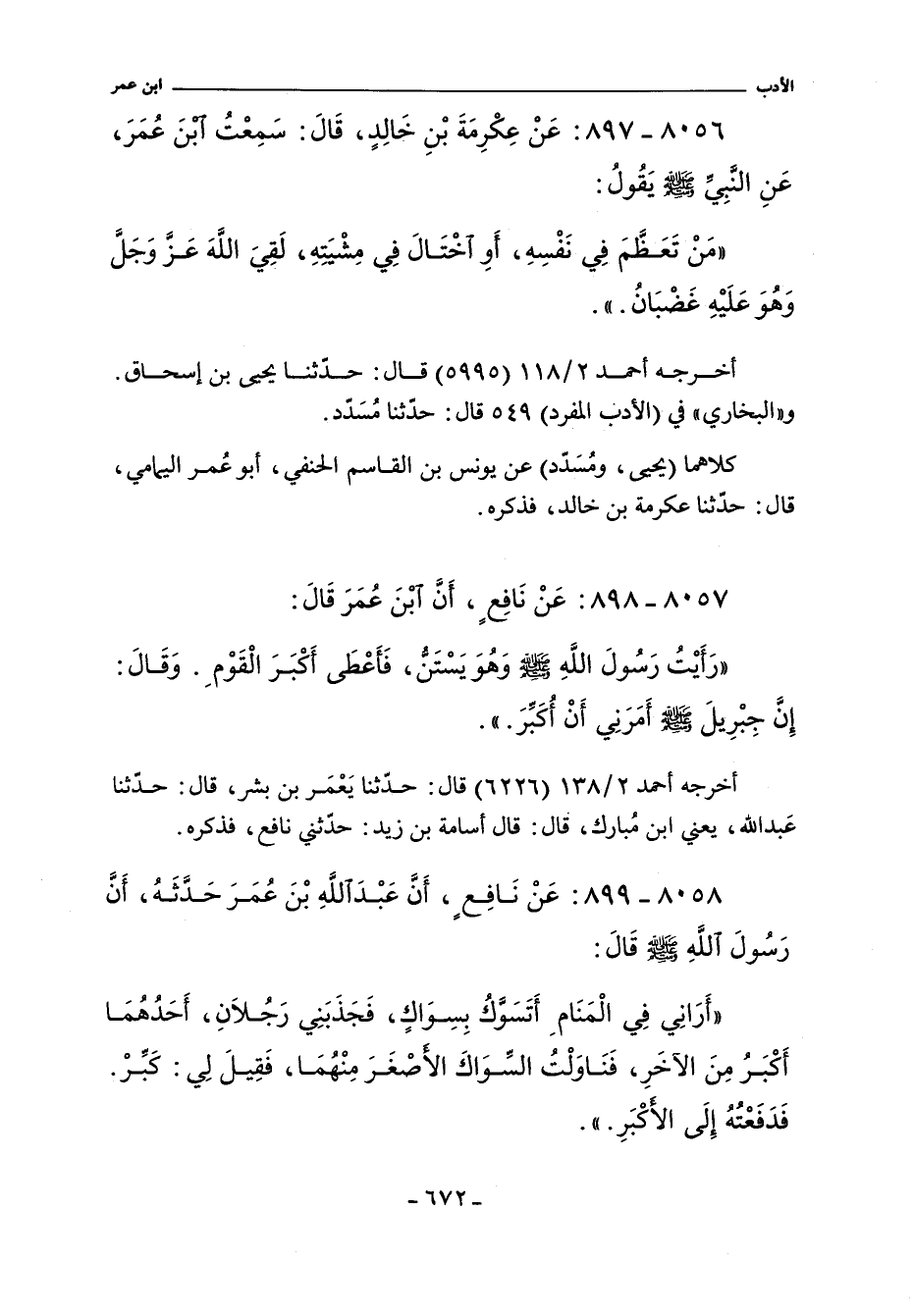 ٨٠٥٦ - عَنْ عِكْرِمَةَ بْنَ خَالِدٍ , قَالَ: سَمِعْتُ ابْنَ عُمَرَ يَقُولُ , عَنِ النَّبِيِّ صلى الله عليه وسلم يَقُولُ: