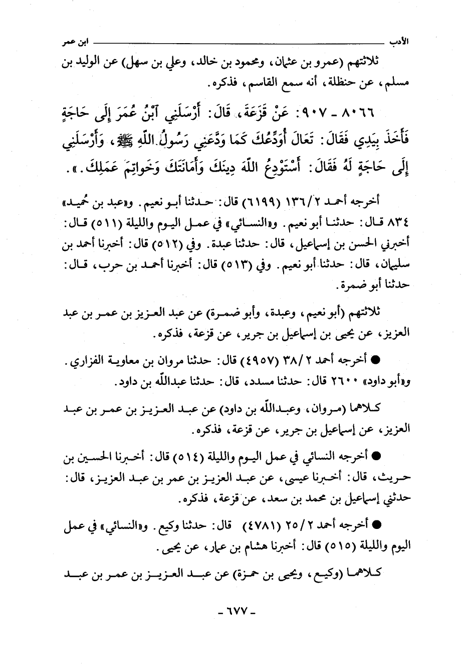 كلاهما (مروان، وعبد الله بن داود) عن عبد العزيز بن عمر بن عبد العزيز، عن إسماعيل بن جرير، عن قزعة، قال: قال لي ابن عمر: هلم أودعك.