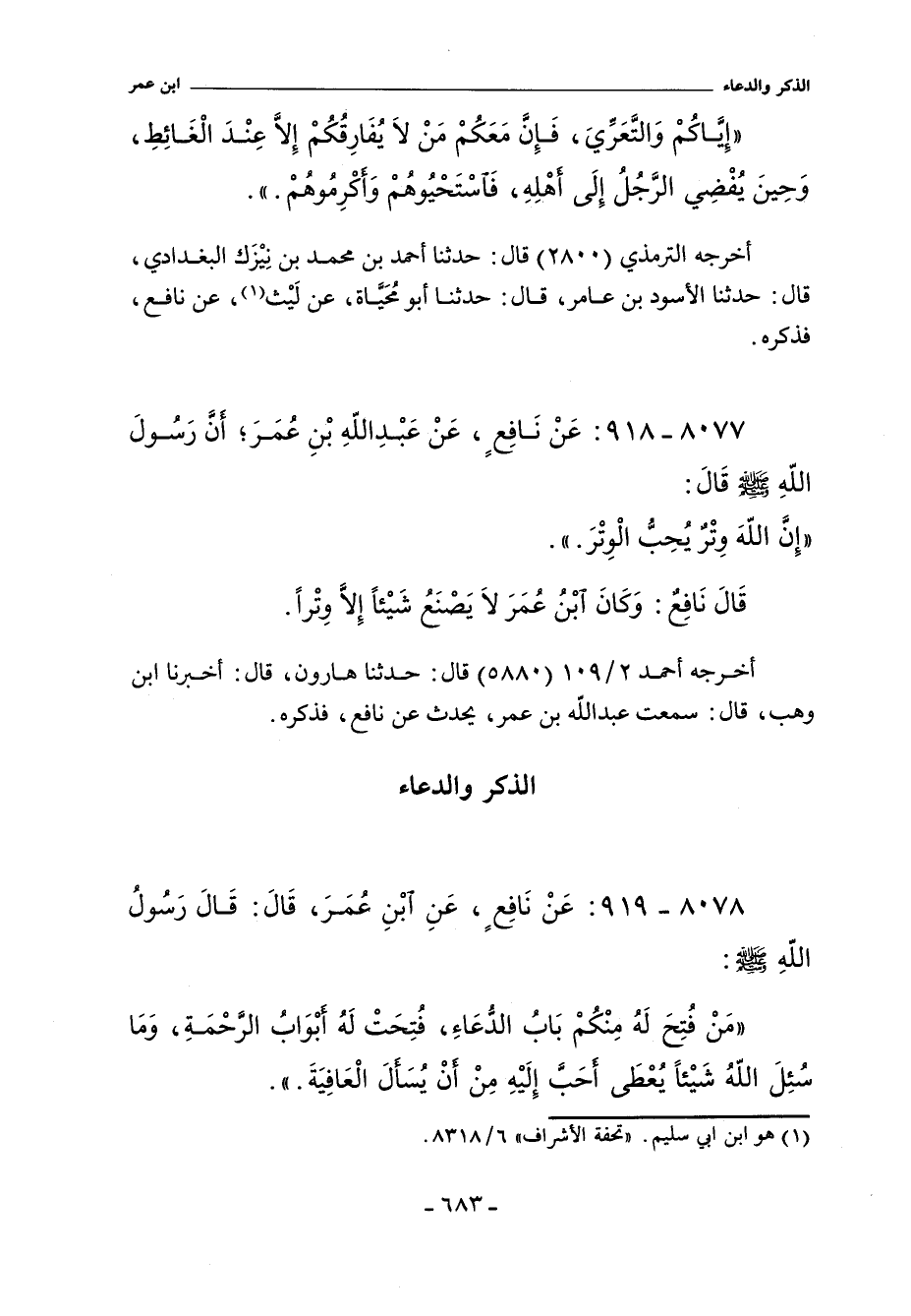 ٨٠٧٧ - عَنْ نَافِعٍ عَنْ عَبْدِ اللَّهِ بْنِ عُمَرَ أَنَّ رَسُولَ اللَّهِ صلى الله عليه وسلم قَالَ: