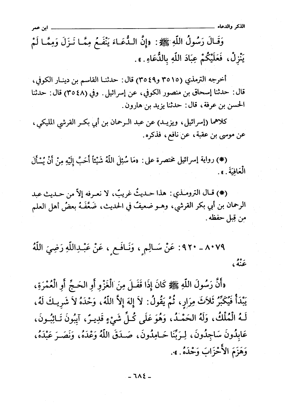 - وفي رواية: مَا سُئِلَ اللَّهُ شَيْئًا أَحَبَّ إِلَيْهِ مِنْ أَنْ يُسْأَلَ الْعَافِيَةَ.