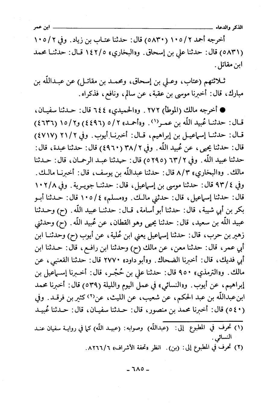- أَخْرَجَهُ مالك "الموطأ" ١٢٦٧. و (الحميدي) ٦٤٤ قال: حدثنا سفيان. قال: حدثنا عُبيد الله بن عمر. و"أحمد" ٢/ ٥ (٤٤٩٦) و ٢/ ١٥ (٤٦٣٦) قال: حدثنا إسماعيل بن إبراهيم، أخبرنا أيوب. وفي ٢/ ٢١ (٤٧١٧) قال: حدثنا يحيى، عن عُبيد الله. وفي ٢/ ٣٨ (٤٩٦٠) قال: حدثنا عبدة، حدثنا عبيد الله. وفي ٢/ ٦٣ (٥٢٩٥) قال: حدثنا عبد الرحمن، حدثنا مالك. و"البُخَارِي" ٣/ ٨ (١٧٩٧) قال: حدثنا عبد الله بن يوسف، أخبرنا مالك. وفي ٤/ ٩٣ (٣٠٨٤) قال: حدثنا موسى بن إسماعيل، حدثنا جويرية. وفي ٨/ ١٠٢ (٦٣٨٥) قال: حدثنا إسماعيل، قال: حدثني مالك. و"مسلم" ٤/ ١٠٥ (٣٢٥٧) قال: حدثنا أبو بكر بن أبي شيبة، حدثنا أبو أسامة، حدثنا عبيد الله (ح) وحدثنا عبيد الله بن سعيد، حدثنا يحيى، وهو القطان، عن عُبيد الله. وفي (٣٢٥٨) قال: وحدثني زهير بن حرب، حدثنا إسماعيل يعني ابن عُلية، عن أيوب (ح) وحدثنا ابن أبي عمر، حدثنا معن، عن مالك (ح) وحدثنا ابن رافع، حدثنا ابن أبي فديك، أخبرنا الضحاك. و"أبو داود" ٢٧٧٠ قال: حدثنا القعنبي، عن مالك. والتِّرْمِذِيّ" ٩٥٠ قال: حدثنا علي بن حُجْر، أخبرنا إسماعيل بن إبراهيم، عن أيوب. و"النَّسائي" في "عمل اليوم والليلة" ٥٣٩ قال: أخبرنا محمد ابن عبد الله بن عبد الحكم، عن شعيب، عن الليث، عن كثير بن فرقد. وفي (٥٤٠) قال: أخبرنا محمد بن منصور، حدثنا سفيان، حدثنا عُبيد
