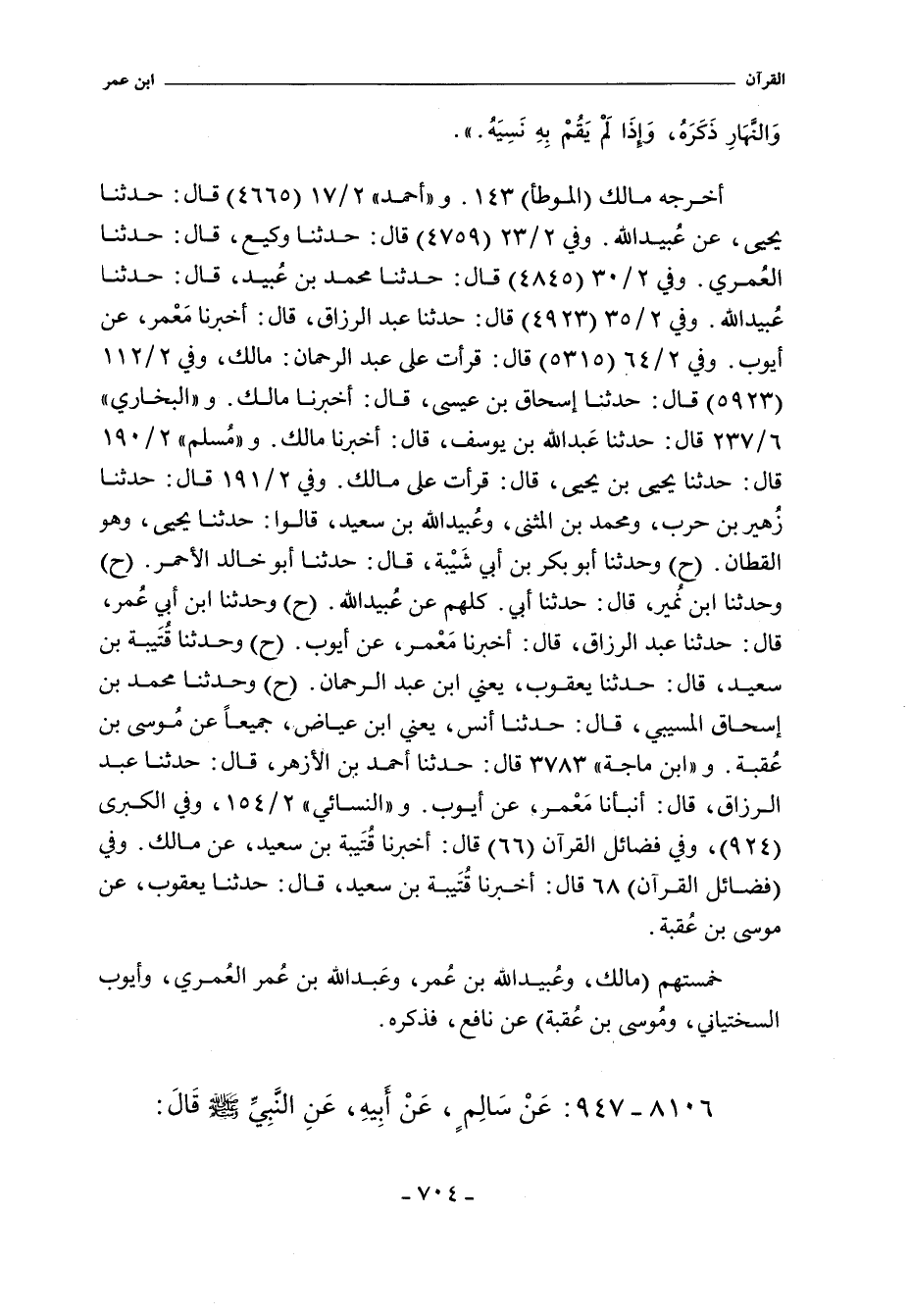 أَخْرَجَهُ مالك "الموطأ" ٥٤١. و"أحمد" ٢/ ١٧ (٤٦٦٥) قال: حدثنا يحيى، عَن عُبيد الله. وفي ٢/ ٢٣ (٤٧٥٩) قال: حدثنا وكيع، حدثنا العُمري. وفي ٢/ ٣٠ (٤٨٤٥) قال: حدثنا محمد بن عُبيد، قال: حدثنا عُبيد الله. وفي ٢/ ٣٦ (٤٩٢٣) قال: حدثنا عبد الرزاق، أخبرنا مَعْمر، عن أيوب. وفي ٢/ ٦٤ (٥٣١٥) قال: قرأت على عبد الرحمن: مالك. وفي ٢/ ١١٢ (٥٩٢٣) قال: حدثنا إسحاق بن عيسى، أخبرنا مالك. و"البُخَاريّ" ٦/ ٢٣٧ (٥٠٣١) قال: حدثنا عبد الله بن يوسف، أخبرنا مالك. و"مسلم" ٢/ ١٩٠ (١٧٨٩) قال: حدثنا يحيى بن يحيى، قال: قرأت على مالك. وفي ٢/ ١٩١ (١٧٩٠) قال: حدثنا زُهير بن حرب، ومحمد بن المثنى، وعُبيد الله بن سعيد، قالوا: حدثنا يحيى، وهو القطان (ح) وحدثنا أبو بكر بن أبي شَيْبة، حدثنا أبو خالد الأحمر (ح) وحدثنا ابن نُمير، حدثنا أبي. كلهم عن عُبيد الله (ح) وحدثنا ابن أبي عُمر، حدثنا عبد الرزاق، أخبرنا مَعْمر، عن أيوب (ح) وحدثنا قُتَيبة بن سعيد، حدثنا يعقوب، يعني ابن عبد الرحمن (ح) وحدثنا محمد بن إسحاق المسيبي، حدثنا أنس، يعني ابن عياض، جميعًا عن مُوسى بن عُقبة. و (اابن ماجة) ٣٧٨٣ قال: حدثنا أحمد بن الأزهر، حدثنا عبد الرزاق، أنبأنا مَعْمر، عن أيوب. و"النَّسَائي" ٢/ ١٥٤، وفي "الكبرى" ١٠١٦ و ٧٩٨٧ قال: أخبرنا قُتَيبة بن سعيد، قال: حدثنا يعقوب، عن موسى بن عُقبة.