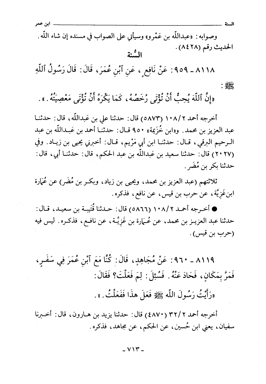 ٨١١٨ - عَنْ نَافِعٍ عَنِ ابْنِ عُمَرَ قَالَ قَالَ رَسُولُ اللَّهِ صلى الله عليه وسلم:
