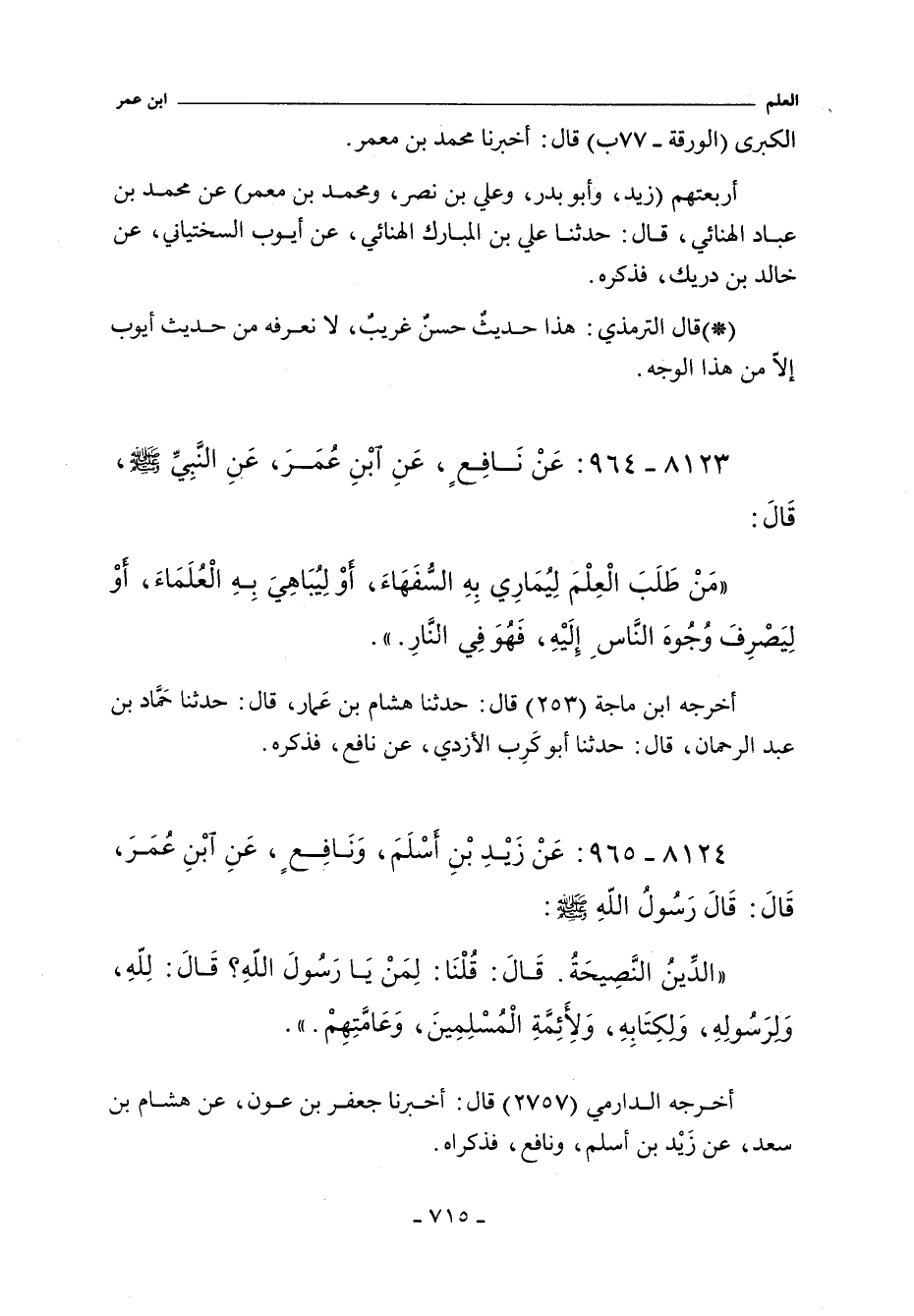 ٨١٢٣ - عَنْ نَافِعٍ عَنِ ابْنِ عُمَرَ عَنِ النَّبِيِّ صلى الله عليه وسلم قَالَ: