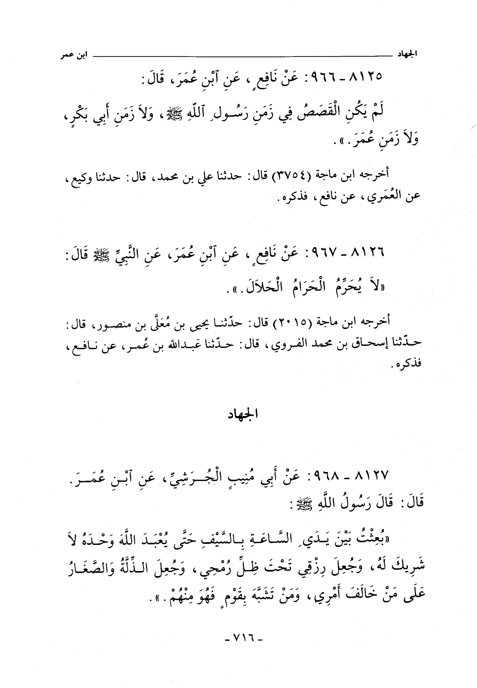 ٨١٢٥ - عَنْ نَافِعٍ عَنِ ابْنِ عُمَرَ قال: