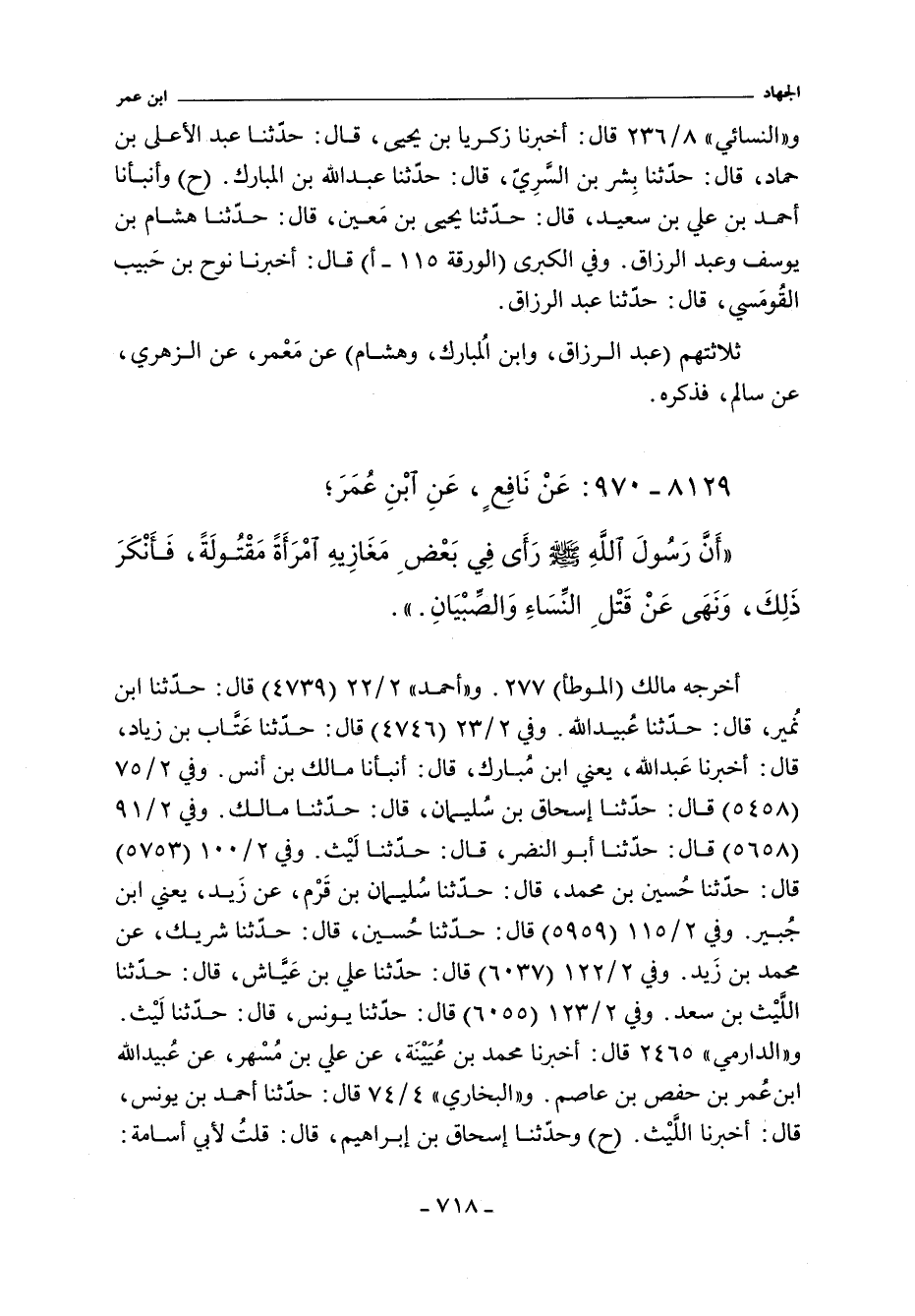 ٨١٢٩ - عَنْ نَافِعٍ عَنِ ابْنِ عُمَرَ؛