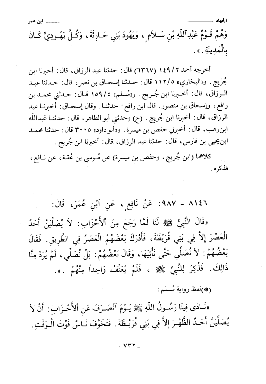 ٨١٤٦ - عَنْ نَافِعٍ عَنِ ابْنِ عُمَرَ قَالَ: