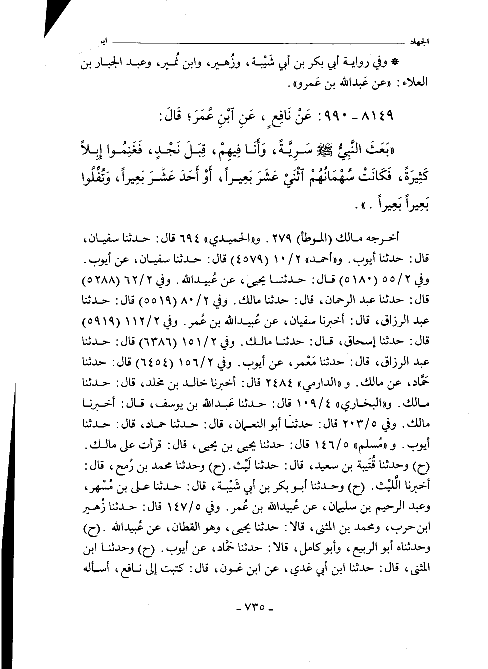 أَخْرَجَهُ مالك "الموطأ" ١٢٩٩. و (الحميدي) ٦٩٤ قال: حدثنا سفيان. قال: حدثنا أيوب. و"أحمد" ٢/ ١٠ (٤٥٧٩) قال: حدثنا سفيان، عن أيوب. وفي ٢/ ٥٥ (٥١٨٠) قال: حدثنا يحيى، عن عُبيد اللهّ. وفي ٢/ ٦٢ (٥٢٨٨) قال: حدثنا عبد الرحمن، حدثنا مالك. وفي ٢/ ٨٠ (٥٥١٩) قال: حدثنا عبد الرزاق، أخبرنا سفيان، عَنْ عُبَيْدِ اللَّهِ بْنِ عُمَر. وفي ٢/ ١١٢ (٥٩١٩) قال: حدثنا إسحاق، حدثنا مالك. وفي ٢/ ١٥١ (٦٣٨٦) قال: حدثنا عبد الرزاق، حدثنا مَعْمر، عن أيوب. وفي ٢/ ١٥٦ (٦٤٥٤) قال: حدثنا حَمَّاد، عن مالك. و"الدارمي" ٢٤٨١ قال: أخبرنا خالد بن مخلد، حدثنا مالك. و"البُخَارِي" ٤/ ١٠٩ (٣١٣٤) قال: حدثنا عبد الله بن يوسف، أخبرنا مالك. وفي ٥/ ٢٠٣ (٤٣٣٨) قال: حدثنآ أبو النعمان، حدثنا حماد، حدثنا أيوب. و"مسلم" ٥/ ١٤٦ (٤٥٧٩) قال: حدثنا يحيى بن يحيى، قال: قرأت على مالك. وفي (٤٥٨٠) قال: وحدثنا قُتَيبة بن سعيد، حدثنا لَيْث (ح) وحدثنا محمد بن رُمح، أخبرنا الليْث. وفي (٤٥٨١) قال: وحدثنا أبو بكر بن أبي شَيْبة، حدثنا على بن مُسْهر، وعبد الرحيم بن سليمان، عَنْ عُبَيْدِ اللَّهِ بْنِ عُمَر. وفي ٥/ ١٤٧ (٤٥٨٢) قال: حدثنا زُهير بن حرب، ومحمد بن المثنى، قالا: حدثنا يحيى، وهو القطان، عن عُبيد اللهّ. وفي (٤٥٨٣) قال: وحدثناه أبو الربيع، وأبو كامل، قالا: حدثنا حَمَّاد، عن أيوب (ح) وحدثنا ابن المثنى، حدثنا ابن أبي عَدي، عن ابن عَون، قال: كتبت إلى نافع، أسأله