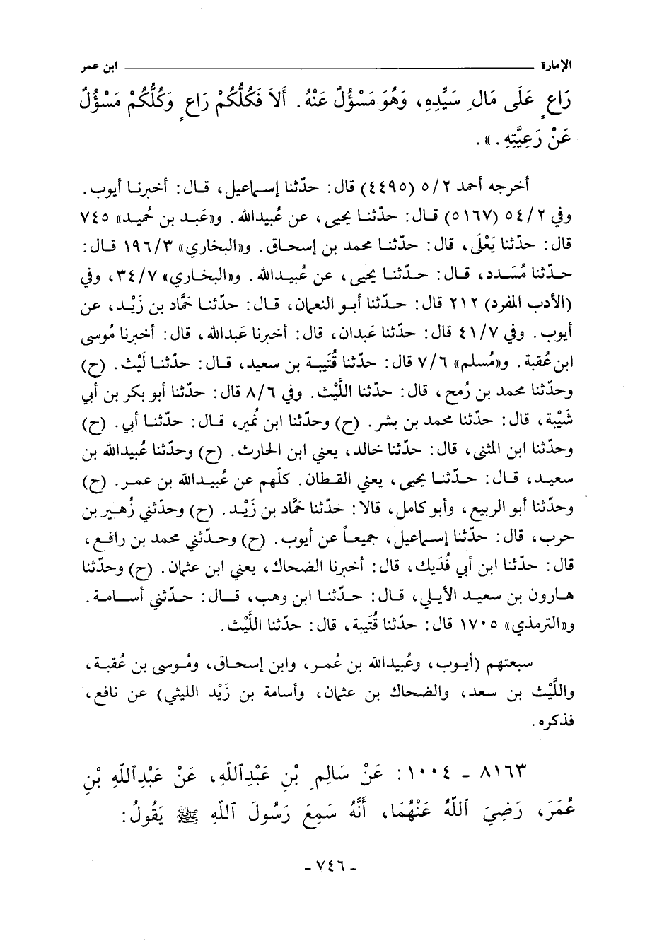 ٨١٦٣ - عَنْ سَالِمِ بْنِ عَبْدِ اللَّهِ عَنْ عَبْدِ اللَّهِ بْنِ عُمَرَ - رضى الله عنهما - أَنَّهُ سَمِعَ رَسُولَ اللَّهِ صلى الله عليه وسلم يَقُولُ:
