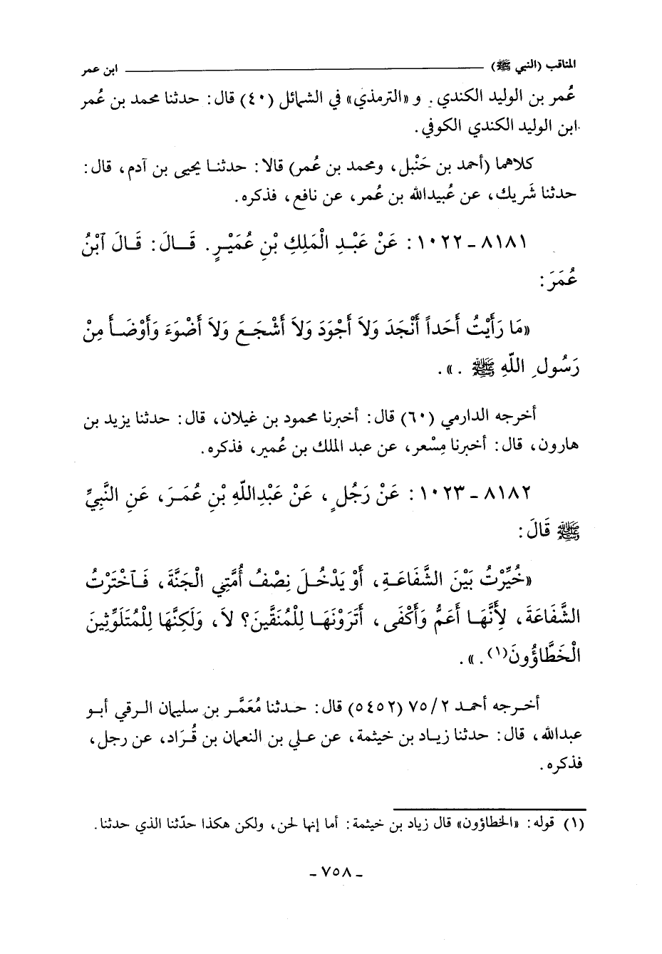 عمر بن الوليد الكندي. والتِّرْمِذِيّ" في (الشمائل) ٤٠ قال: حدثنا محمد بن عمر بن الوليد الكندي الكوفي.