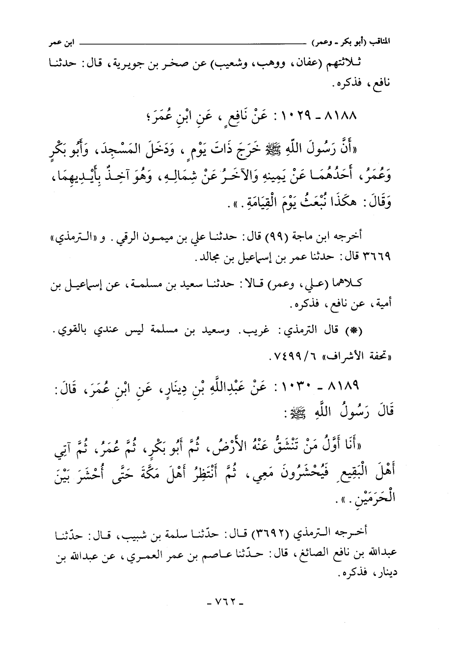 - قال الترمذي: وَسَعِيدُ بْنُ مَسْلَمَةَ لَيْسَ عِنْدَهُمْ بِالْقَوِىِّ. وَقَدْ رُوِىَ هَذَا الْحَدِيثُ أَيْضًا مِنْ غَيْرِ هَذَا الْوَجْهِ عَنْ نَافِعٍ عَنِ ابْنِ عُمَرَ.