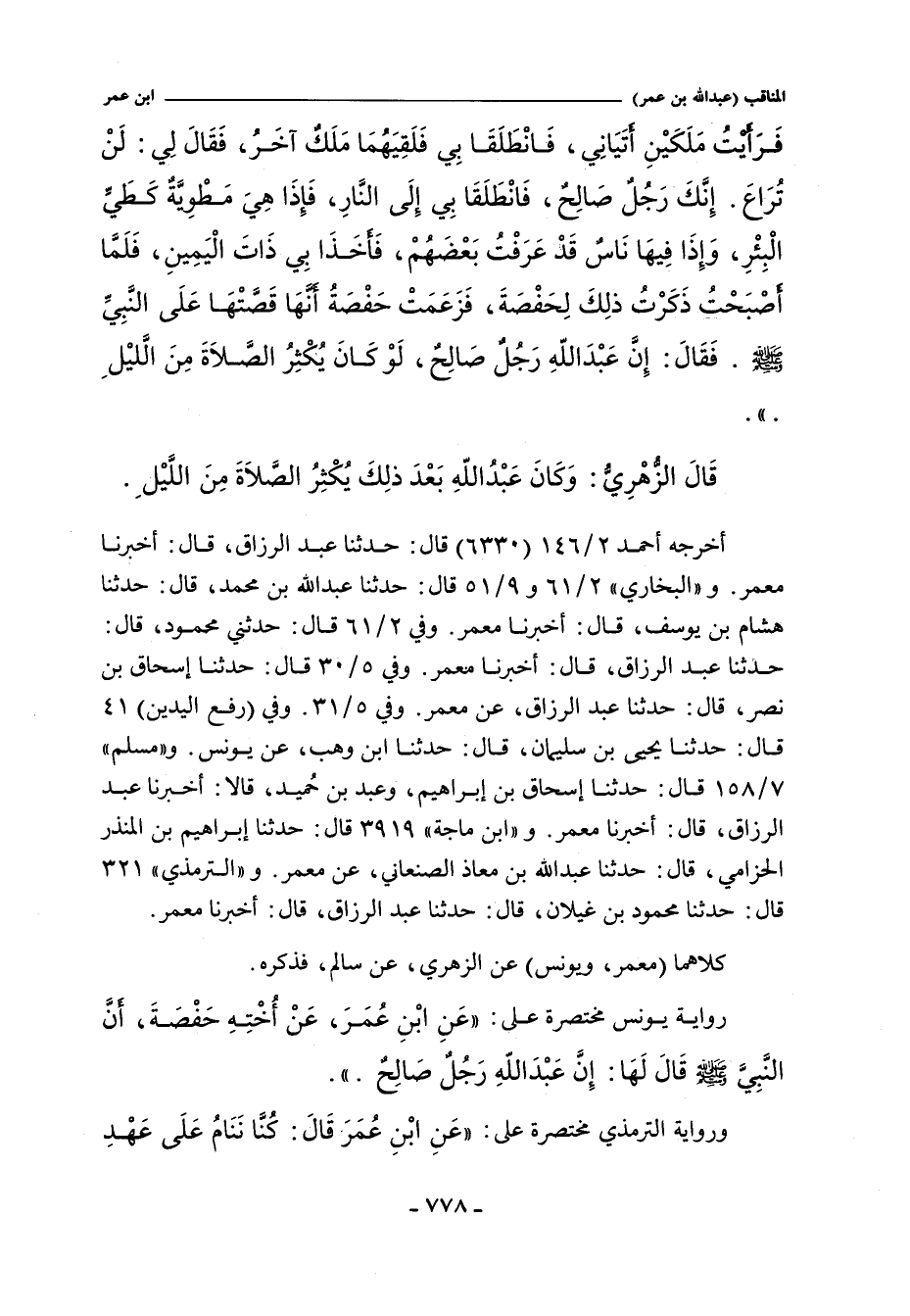 قَالَ الزهري: فَكَانَ عَبْدُ اللَّهِ يُكْثِرُ الصَّلَاةَ مِنَ اللَّيْلِ.