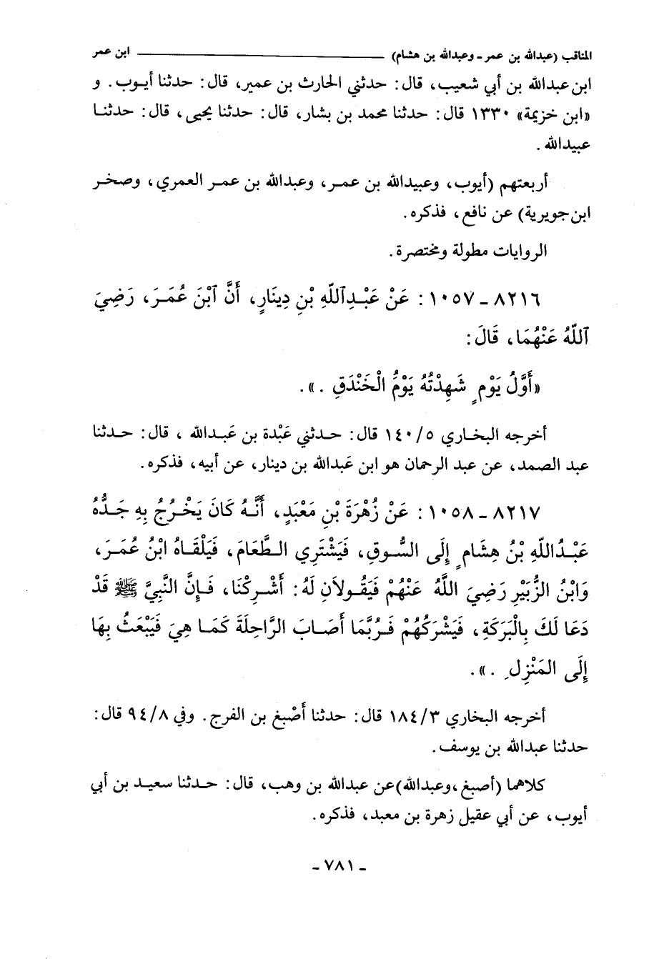أَخْرَجَهُ البخاري ٥/ ١٤٠ (٤١٠٧) قال: حدثني عَبْدة بن عبد الله، حدثنا عبد الصمد، عن عبد الرحمن، هو ابن عبد الله بن دينار، عن أبيه، فذكره.