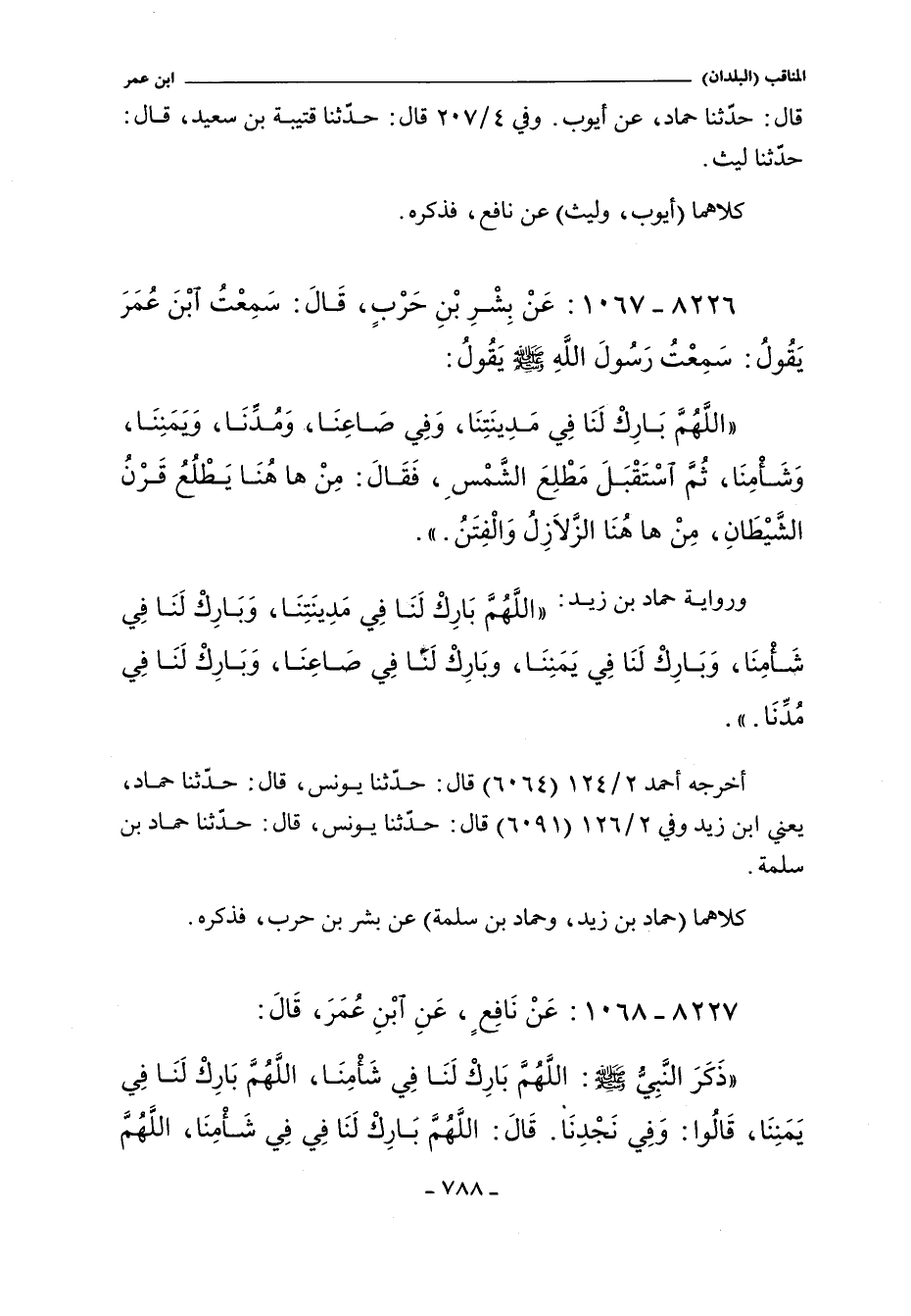 - لَفْظ حَمَّادٌ بْنَ زَيْدٍ: اللَّهُمَّ بَارِكْ لَنَا فِى مَدِينَتِنَا وَبَارِكْ لَنَا فِى شَأْمِنَا وَبَارِكْ لَنَا فِى يَمَنِنَا وَبَارِكْ لَنَا فِى صَاعِنَا وَبَارِكْ لَنَا فِى مُدِّنَا.