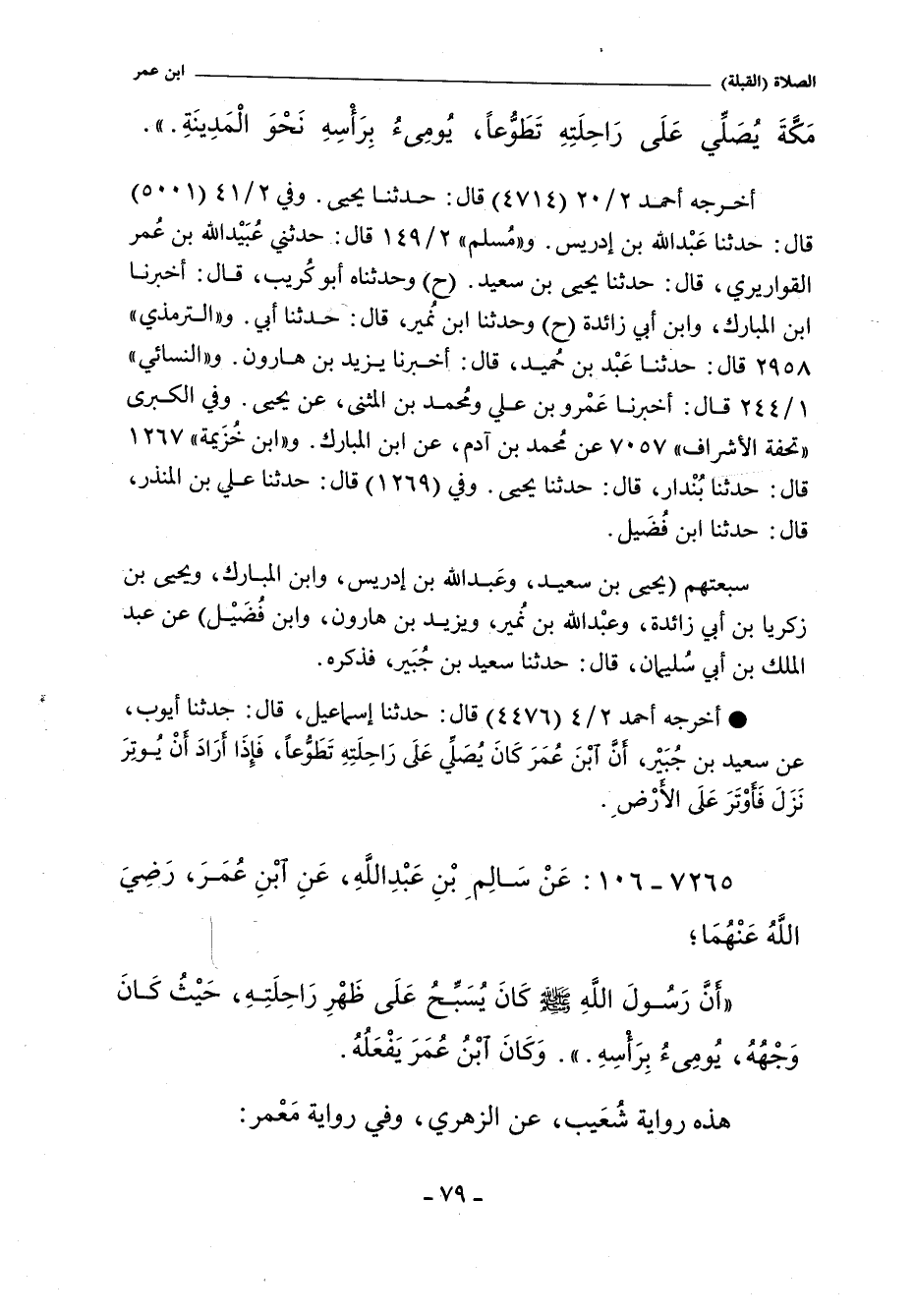 - أخرجه أحمد ٢/ ٤ (٤٤٧٦) قال: حدثنا إسماعيل , عن أيوب، عن سعيد بن جُبَيْر، أنَّ ابن عُمَرَ كَانَ ئصَلِّي عَلَى رَاحِلَتِهِ تَطَوُّعًا، فَإِذَا أرَادَ أَنْ يُوتِرَ نَزَلَ فَأوْتَرَ عَلَى الأرْضَ. (موقوف.