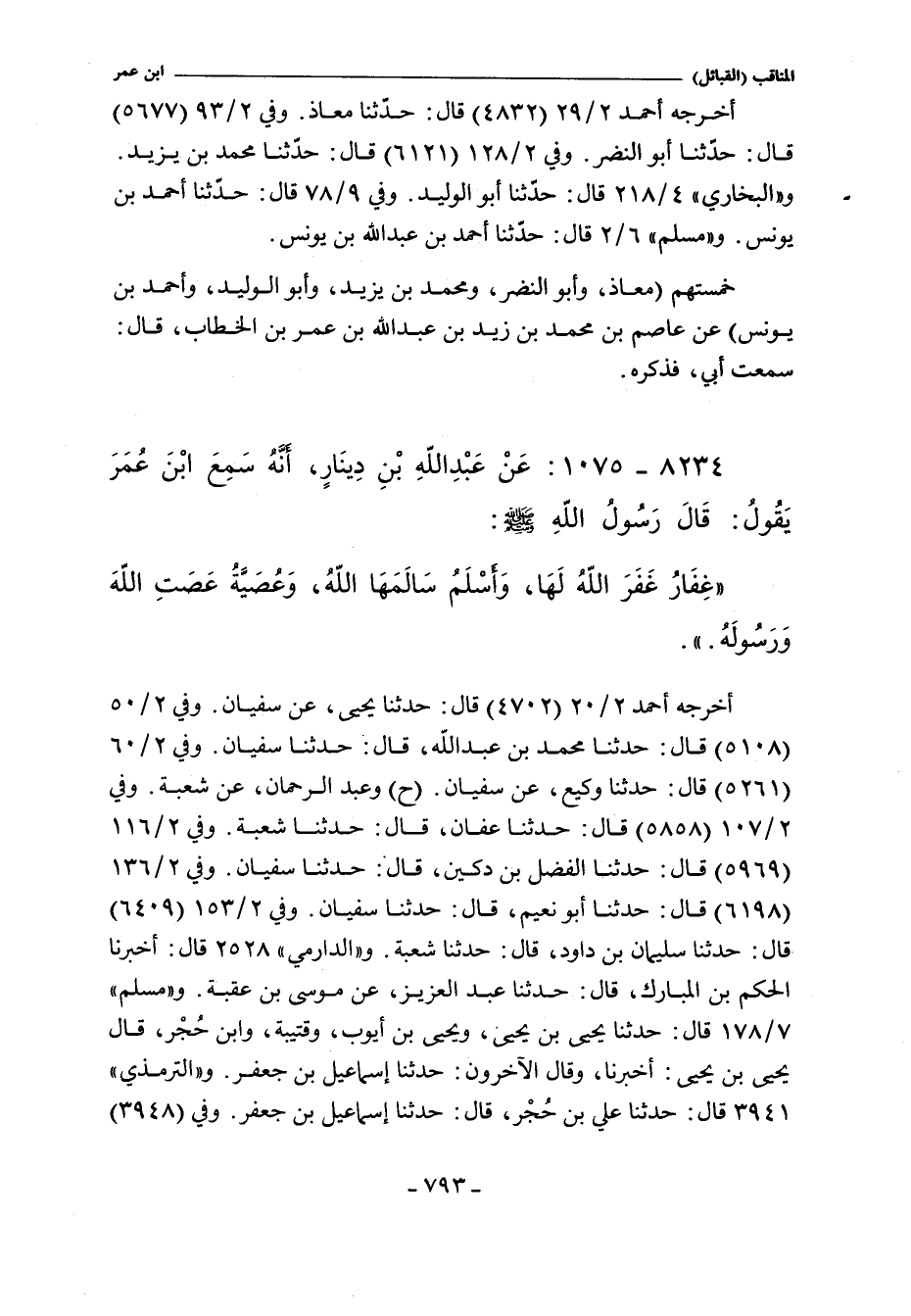 أَخْرَجَهُ أحمد ٢/ ٢٠ (٤٧٠٢) قال: حدثنا يحيى، عن سفيان. وفي ٢/ ٥٠ (٥١٠٨) قال: حدثنا محمد بن عبد الله، حدثنا سفيان. وفي ٢/ ٦٠ (٥٢٦١) قال: حدثنا وكيع، عن سفيان (ح) وعبد الرحمن، عن شعبة. وفي ٢/ ١٠٧ (٥٨٥٨) قال: حدثنا عفان، حدثنا شعبة. وفي ٢/ ١١٦ (٥٩٦٩) قال: حدثنا الفضل بن دكين، حدثنا سفيان. وفي ٢/ ١٥٣ (٦٤٠٩) قال: حدثنا سليمان بن داود، حدثنا شعبة. و"الدارِمِي" ٢٥٢٥ قال: أخبرنا الحكم بن المبارك، حدثنا عبد العزيز، عن موسى بن عقبة. و"مسلم" ٧/ ١٧٨ (٦٥٢٢) قال: حدثنا يحيى بن يحيى، ويحيى بن أيوب، وقتيبة، وابن حُجْر، قال يحيى بن يحيى: أخبرنا، وقال الآخرون: حدثنا إسماعيل بن جعفر. والتِّرْمِذِيّ" ٣٩٤١ قال: حدثنا علي بن حُجْر، حدثنا إسماعيل بن جعفر. وفي (٣٩٤٨)