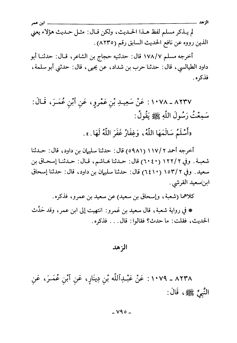 ٨٢٣٨ - عَنْ عَبْدِ اللَّهِ بْنُ دِينَارٍ عَنِ ابْنِ عُمَرَ عَنِ النَّبِيِّ صلى الله عليه وسلم قَالَ: