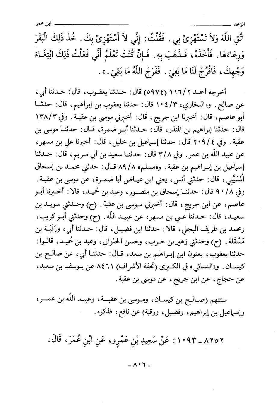 أَخْرَجَهُ أحمد ٢/ ١١٦ (٥٩٧٤) قال: حدثنا يعقوب، حدثنا أبي، عن صالح. و"البُخَارِي" ٣/ ١٠٤ (٢٢١٥) قال: حدثنا يعقوب بن إبراهيم، حدثنا أبو عاصم، أخبرنا ابن جريج، قال: أخبرني موسى بن عقبة. وفي ٣/ ١٣٨ (٢٣٣٣) قال: حدثنا إبراهيم بن المنذر، حدثنا أبو ضمرة، حدثنا موسى بن عقبة. وفي ٤/ ٢٠٩ (٣٤٦٥) قال: حدثنا إسماعيل بن خليل، أخبرنا علي بن مسهر، عَنْ عُبَيْدِ اللَّهِ بْنِ عُمَر. وفي ٨/ ٣ (٥٩٧٤) قال: حدثنا سعيد بن أبي مريم، حدثنا إسماعيل بن إبراهيم بن عقبة. و"مسلم" ٨/ ٨٩ (٧٠٤٩) قال: حدثني محمد بن إسحاق الُمسَيبِي، حدثنا أنس، يعني ابن عياض أبا ضمرة، عن موسى بن عقبة. وفي ٨/ ٩٠ (٧٠٥٠) قال: وحدثنا إسحاق بن منصور، وعبد بن حُميد، قالا: أخبرنا أبو عاصم، عن ابن جريج، أخبرني موسى بن عقبة (ح) وحدثني سويد بن سعيد، حدثنا علي بن مسهر، عن عبيد الله (ح) وحدثني أبو كريب، ومحمد بن طريف البجلي، قالا: حدثنا ابن فضيل، حدثنا أبي، ورَقَبَة بن مَسْقَلة (ح) وحدثني زهيربن حرب، وحسن الحلواني، وعبد بن حُميد، قالوا: حدثنا يعقوب، يعنون بن إبراهيم بن سعد، حدثنا أبي، عن صالح بن كيسان. و"النَّسائي" في "الكبرى" "تحفة الأشراف" ٨٤٦١ عن يوسف بن سعيد، عن حجاج، عن ابن جريج، عن موسى بن عقبة.