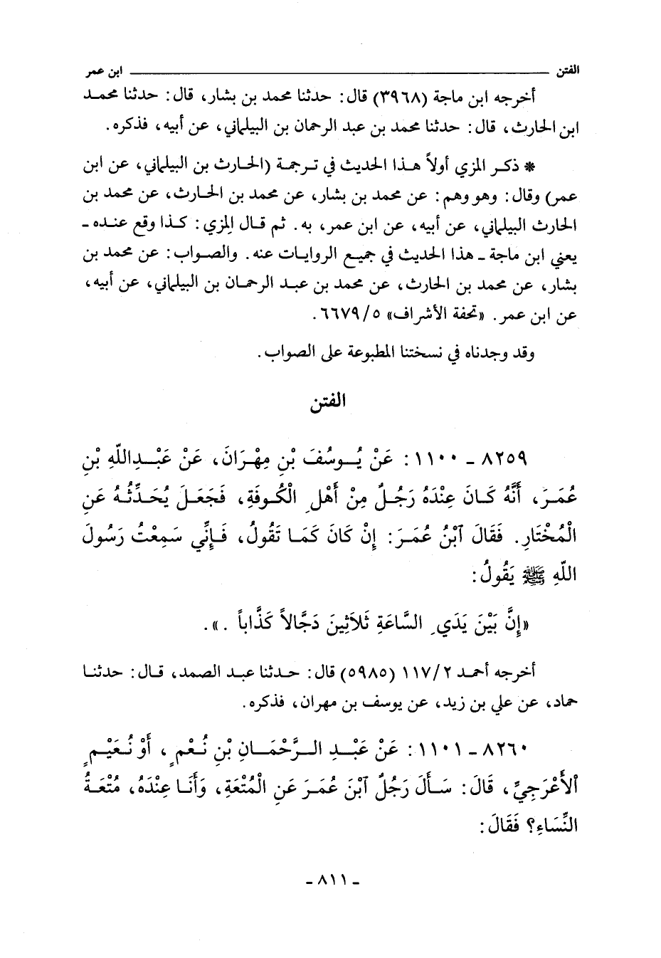 أَخْرَجَهُ ابن ماجة (٣٩٦٨) قال: حدثنا محمد بن بشار، قال: حدثنا محمد بن الحارث، حدثنا محمد بن عبد الرحمن بن البيلماني، عن أبيه، فذكره.