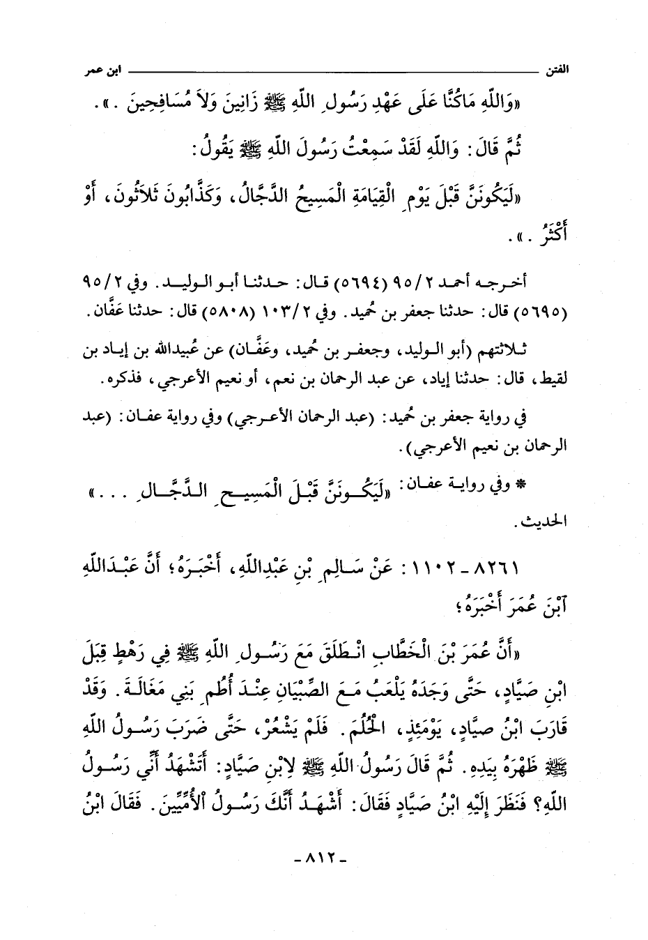 ٨٢٦١ - عَنْ سَالِمِ بْنِ عَبْدِ اللَّهِ أَنَّ عَبْدَ اللَّهِ بْنَ عُمَرَ أَخْبَرَهُ؛