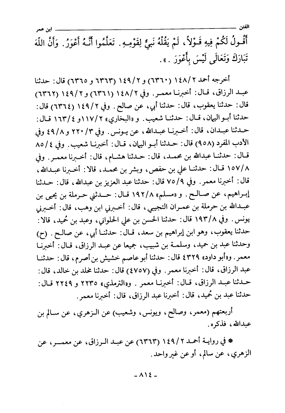 أربعتهم (معمر، وصالح بن كيسان، ويونس بن يزيد، وشعيب) عن ابن شهاب الزهري، عن سالم بن عبد الله، فذكره.
