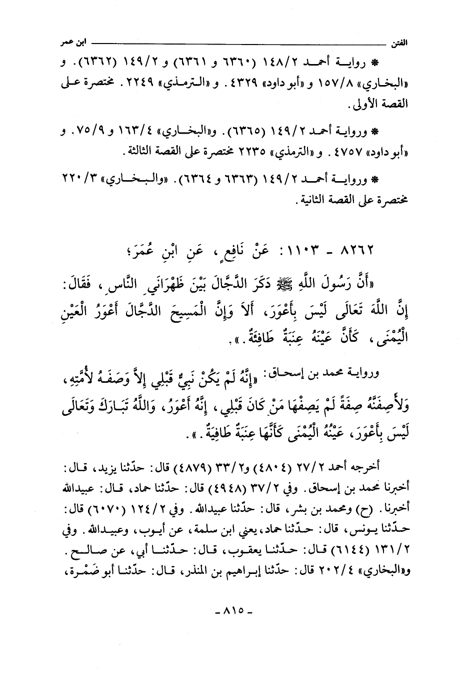 - أَخْرَجَهُ أحمد ٢/ ١٤٩ (٦٣٦٣) قال: حَدَّثَنَا عَبْدُ الرَّزَّاقِ عَنْ مَعْمَرٍ عَنِ الزُّهْرِىِّ عَنْ سَالِمٍ أَوْ عَنْ غَيْرِ وَاحِدٍ قَالَ قَالَ ابْنُ عُمَرَ: