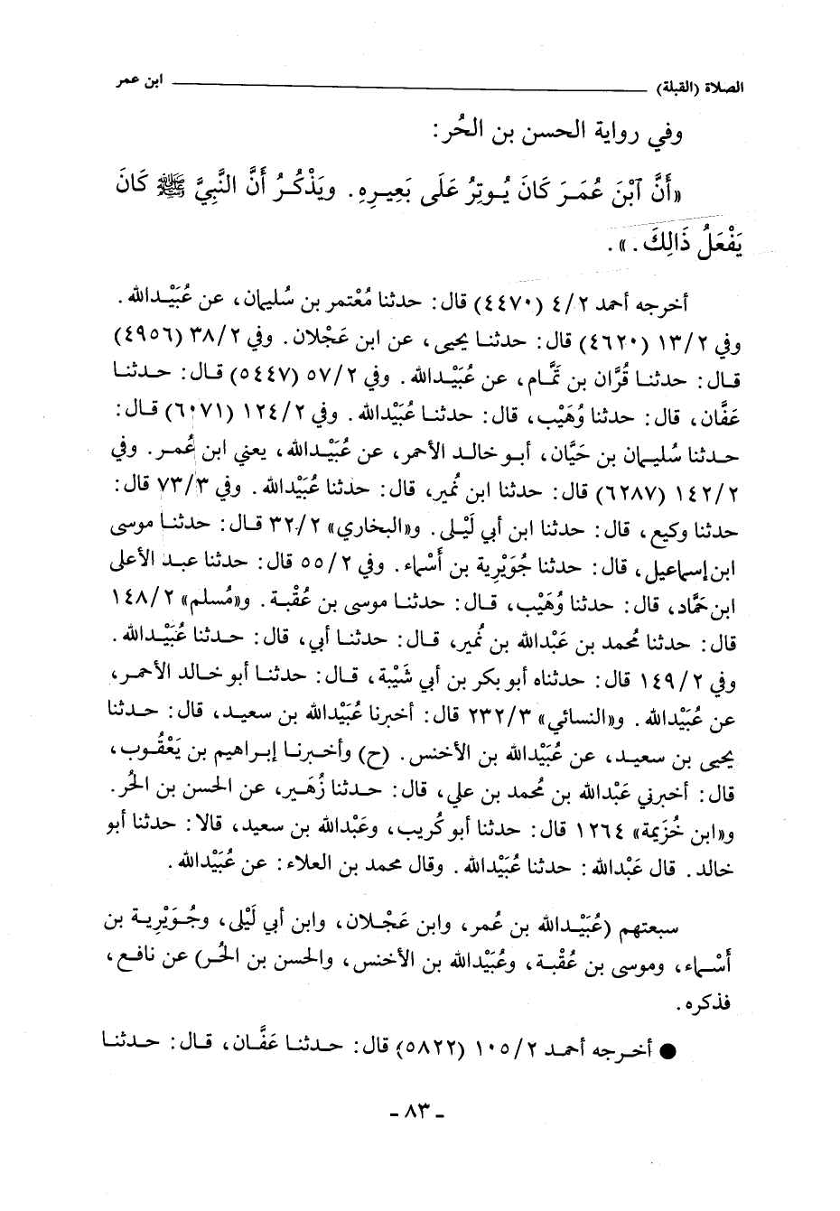 أخرجه أحمد ٢/ ٤ (٤٤٧٠) قال: حدثنا مُعْتمر بن سُليمان. وفي ٢/ ٣٨ (٤٩٥٦) قال: حدثنا قران بن تمام. وفي ٢/ ٥٧ (٥٤٤٧) قال: حدثنا عَفَّان، حدثنا وُهَيْب. وفي ٢/ ١٢٤ (٦٠٧١) قال: حدثنا سليمان بن حَيَّان، أبو خالد الأحمر. وفي ٢/ ١٤٢ (٦٢٨٧) قال: حدثنا ابن نُمَيْر. و"مسلم" ٢/ ١٤٨ (١٥٥٦) قال: حدثنا مُحَمَّد بن عبد الله بن نُمَيْر، حدثنا أبي. وفي ٢/ ١٤٩ (١٥٥٧) قال: وحدثناه أبو بكر بن أبي شيبة , حدثنا أبو خالد الأحمر. و"ابن خزيمة" ١٢٦٤ قال: حدثنا أبو كُرَيْب، وعبد الله بن سعيد. قالا: حدثنا أبو خالد.