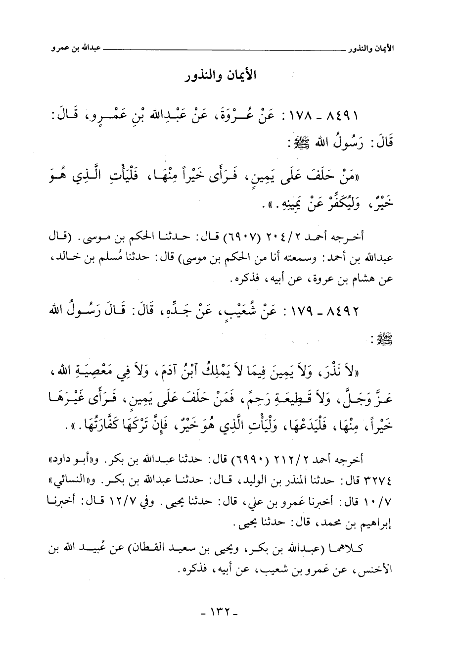 أخرجه أحمد ٢/ ١٨٥ (٦٧٣٦) قال: حدَّثنا أبو سعيد مولى بني هاشم، حدَّثنا خليفة بن خياط. وفي ٢/ ٢١٠ (٦٩٦٩) قال: حدَّثنا عبد الصمد، حدَّثنا خليفة بن خياط الليثي. وفي ٢/ ٢١٢ (٦٩٩٠) قال: حدَّثنا عبد الله بن بكر، حدَّثنا عبيد الله بن الأخنس، أبو مالك الأزدي. و"أبو داود" ٣٢٧٤ قال: حدَّثنا المنذر بن الوليد، حدَّثنا عبد الله بن بكر، حدَّثنا عبيد الله بن الأخنس. و"ابن ماجة" ٢١١ قال: حدَّثنا عبد الله بن عبد المؤمن الواسطي، حدَّثنا عون بن عمارة، حدَّثنا روح بن القاسم، عن عبيد الله بن عمر. و"النَّسائي" ٧/ ١٠، وفي "الكبرى" ٤٧٠٥ قال: أَخْبَرنا عَمرو بن علي، قال: حدَّثنا يَحيى، عن عبيد الله بن الأخنس. وفي ٧/ ١٢، وفي "الكبرى" ٤٧١٥ قال: أَخْبَرنا إبراهيم بن محمد، قال: حدَّثنا يَحيى، عن عبيد الله بن الأخنس.