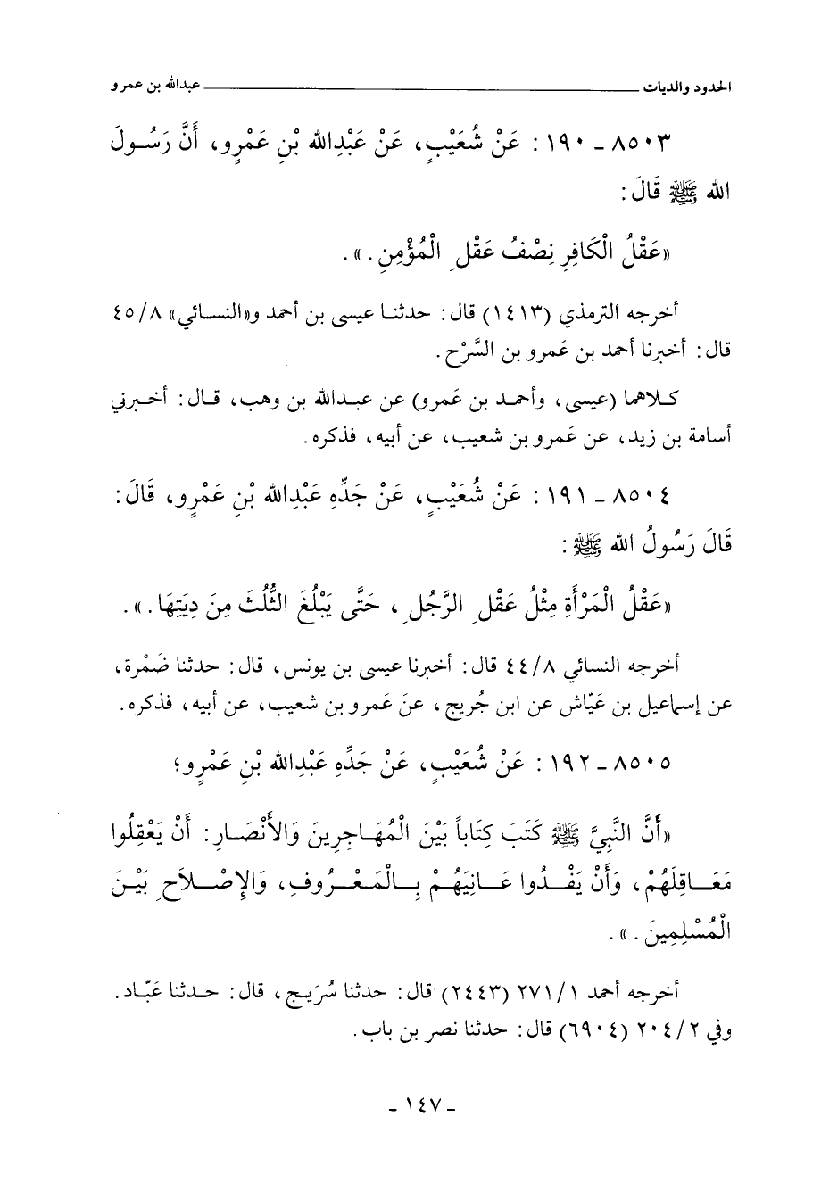 ٨٥٠٣ - عَنْ شُعَيْبٍ، عَنْ عَبْدِ اللهِ بْنِ عَمْروٍ، أَنَّ رَسُولَ اللَّهِ صلى الله عليه وسلم: