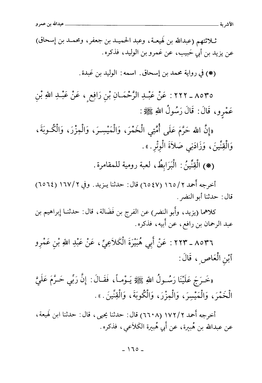 ٨٥٣٥ - عَنْ عَبْدِ الرَّحْمَانِ بْنِ رَافِعٍ، عَنْ عَبْدِ اللهِ بْنِ عَمْروٍ. قال: قَالَ رَسُولُ اللهِ صلى الله عليه وسلم: