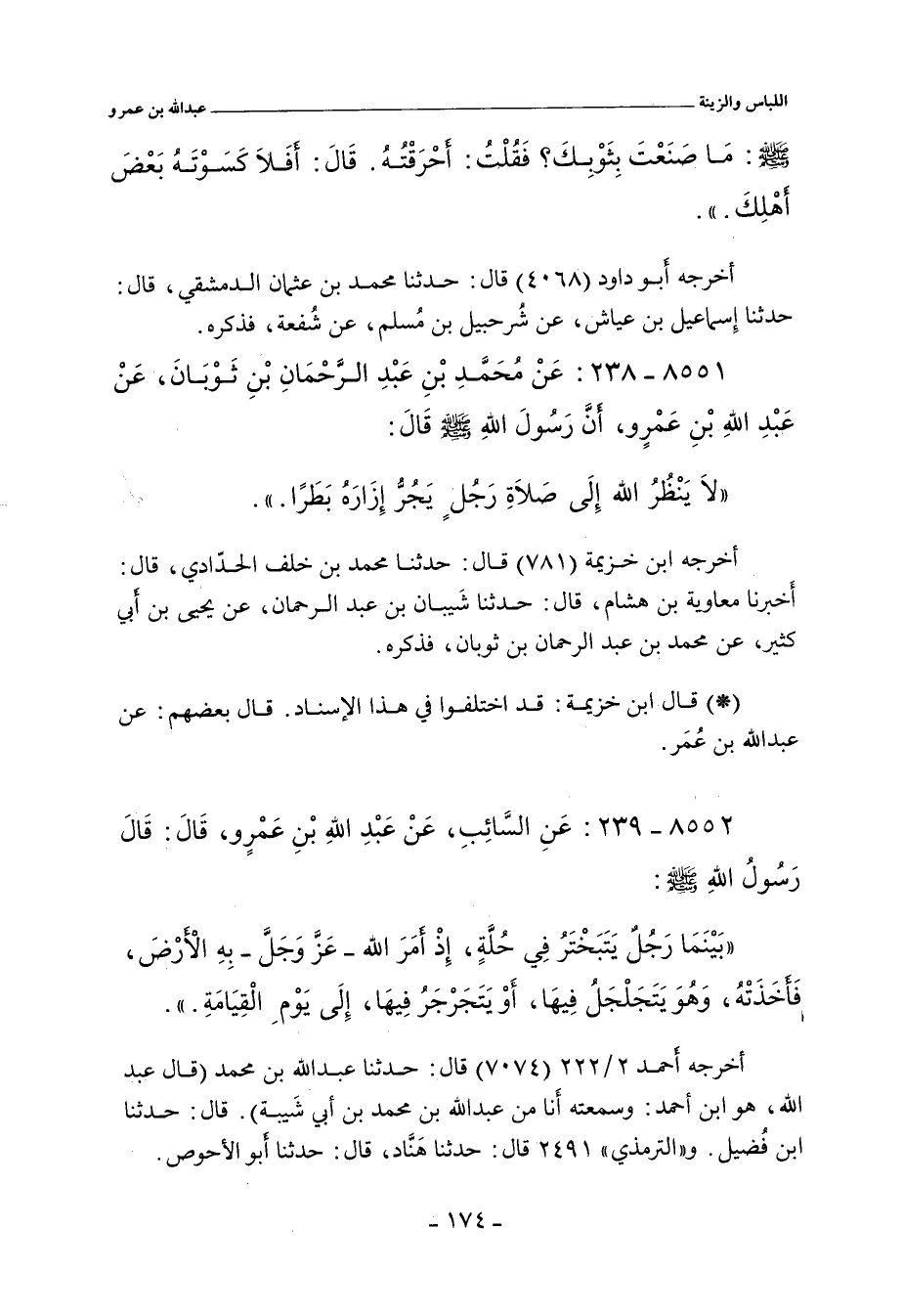 صلى الله عليه وسلم: مَا صَنَعْتَ بِثَوْبِكَ؟ فَقُلْتُ: أَحْرَقْتُهُ. قَالَ: أَفَلَا كَسَوْتَهُ بَعْضَ أَهْلِكَ.