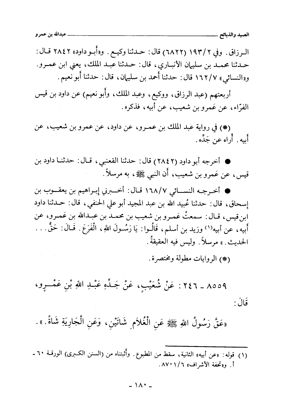 أربعتهم (عبد الرزاق، ووكيع، وعبد الملك، وأبو نعيم) عن داود بن قيس الفرّاء، عن عَمرو بن شُعيب، عن أبيه، فذكره.