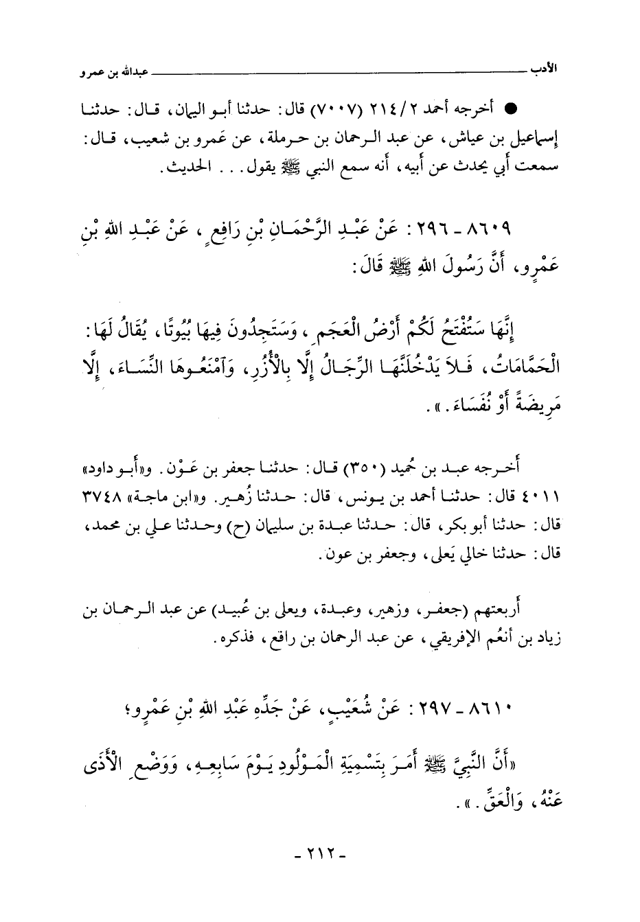 ٨٦٠٩ - عَنْ عَبْدِ الرَّحْمَانِ بْنِ رَافِعٍ، عَنْ عَبْدِ اللهِ بْنِ عَمْرٍو، أَنَّ رَسُولَ اللهِ صلى الله عليه وسلم قَالَ: