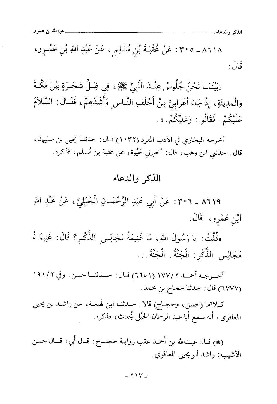 ٨٦١٨ - عَنْ عُقْبَةَ بْنِ مُسْلِمٍ، عَنْ عَبْدِ اللهِ بْنِ عَمْرٍو. قَالَ: