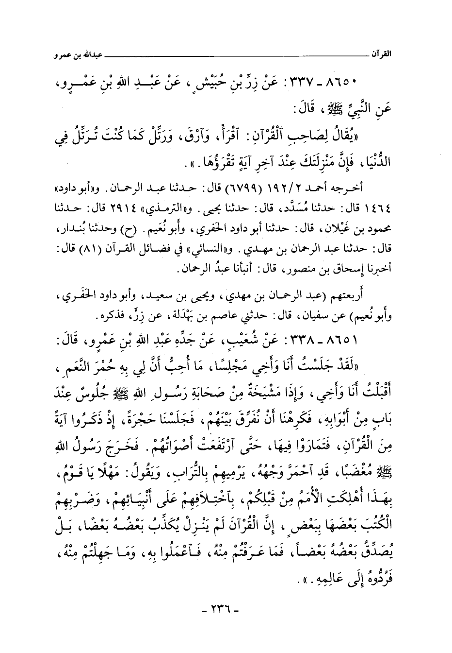 ٨٦٥٠ - عَنْ زِرِّ بْنِ حُبَيْشٍ، عَنْ عَبْدِ اللهِ بْنِ عَمْرٍو، عَنِ النَّبِيِّ صلى الله عليه وسلم. قَالَ: