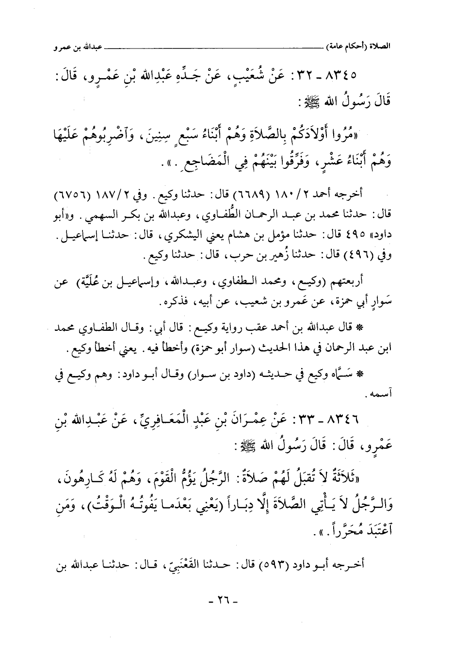 أربعتهم (وكيع، والطفاوي، والسهمي، وإسماعيل ابن عُلَيَّة) عن سَوارٍ أبي حمزة، عن عَمرو بن شُعيب، عن أبيه، فذكره.