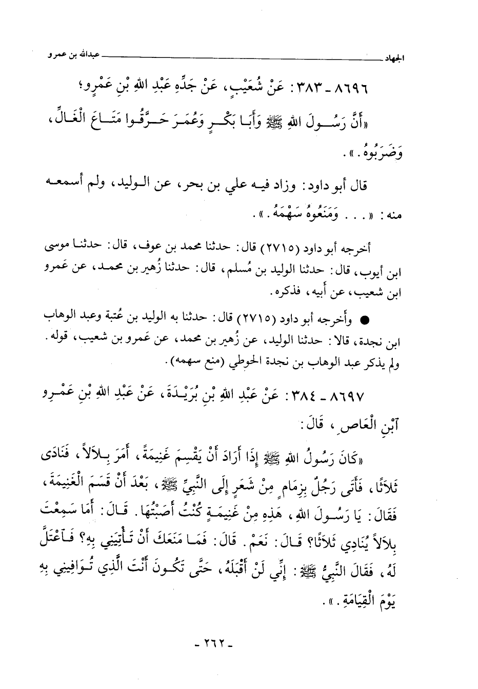 - وأخرجه أبو داود (٢٧١٥) قال: حدثنا به الوليد بن عُتبة، وعبد الوهاب بن نجدة. قالا: حدثنا الوليد، عن زُهير بن محمد، عن عَمرو بن شعيب، قَوْلَهُ.
