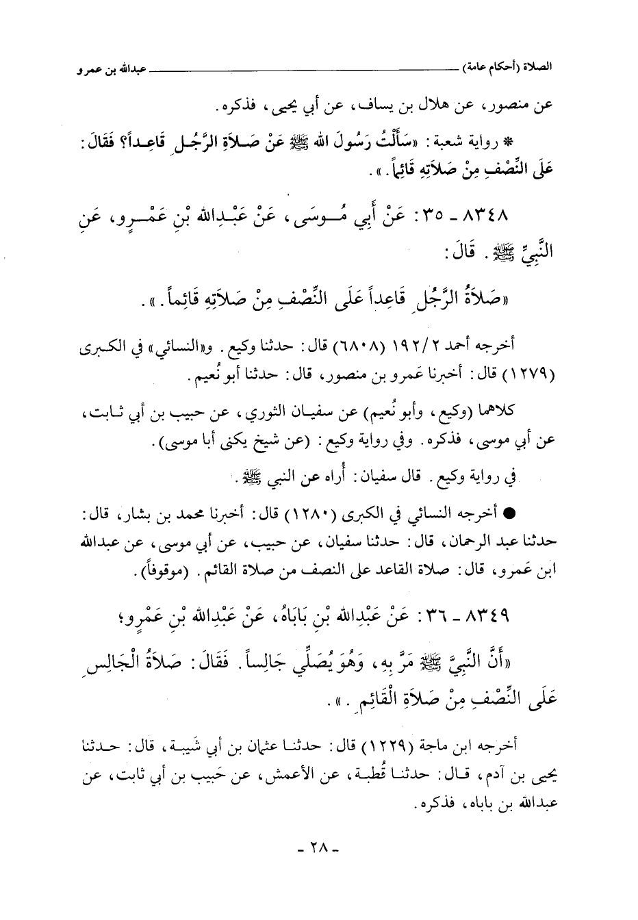 ٨٣٤٨ - عَنْ أبِي مُوسَى، عَنْ عَبْدِ اللهِ بْنِ عَمْرٍو، عَنِ النَّبِيِّ صلى الله عليه وسلم قَالَ: