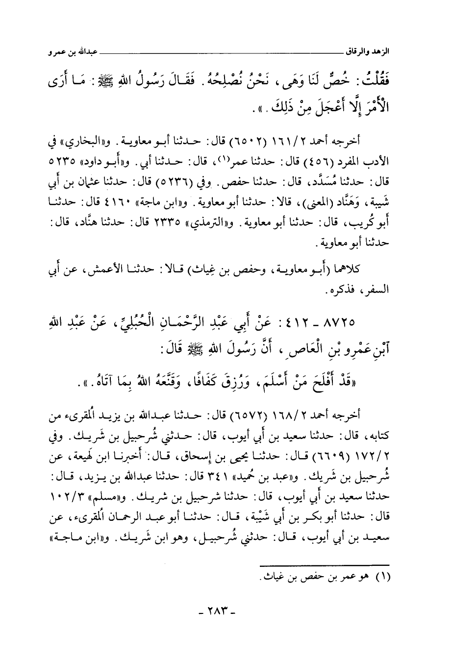 كلاهما (أبو معاوية، وحفص بن غِياث) قالا: حدثنا الأعمش، عن أبي السفر، فذكره.