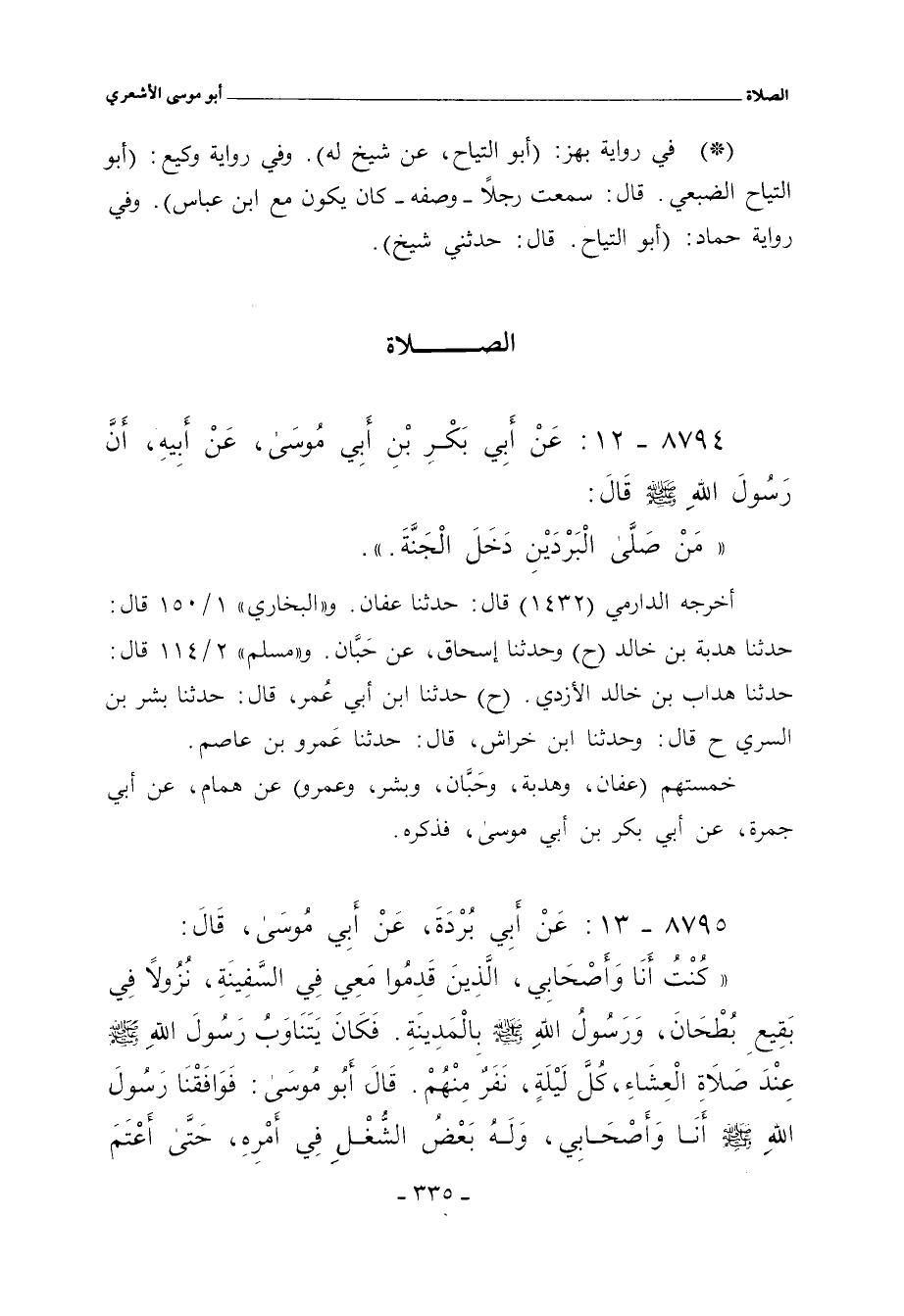 ٨٧٩٥ - عن أَبِي بُرْدَةَ، عَنْ أَبِي مُوسَى، قال: