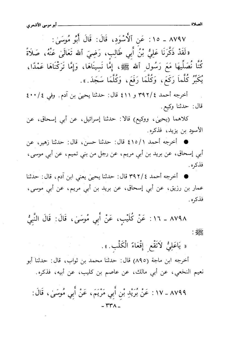 ٨٧٩٨ - عَنْ كُلَيْبٍ، عَنْ أَبِي مُوسَى، قال: قال النَّبِيُّ صلى الله عليه وسلم: