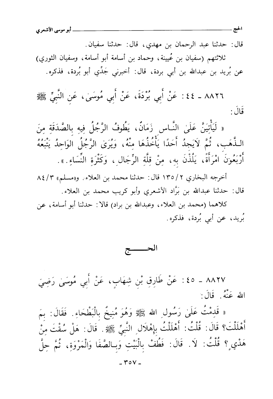 ٨٨٢٧ - عَنْ طَارِقِ بْنِ شهَابِ، عَنْ أَبِي مُوسَى رَضِيَ الله عَنْهُ. قال: